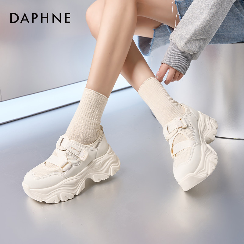 达芙妮厚底老爹鞋女2026新款网面凉鞋春夏季透气运动鞋子女款白鞋