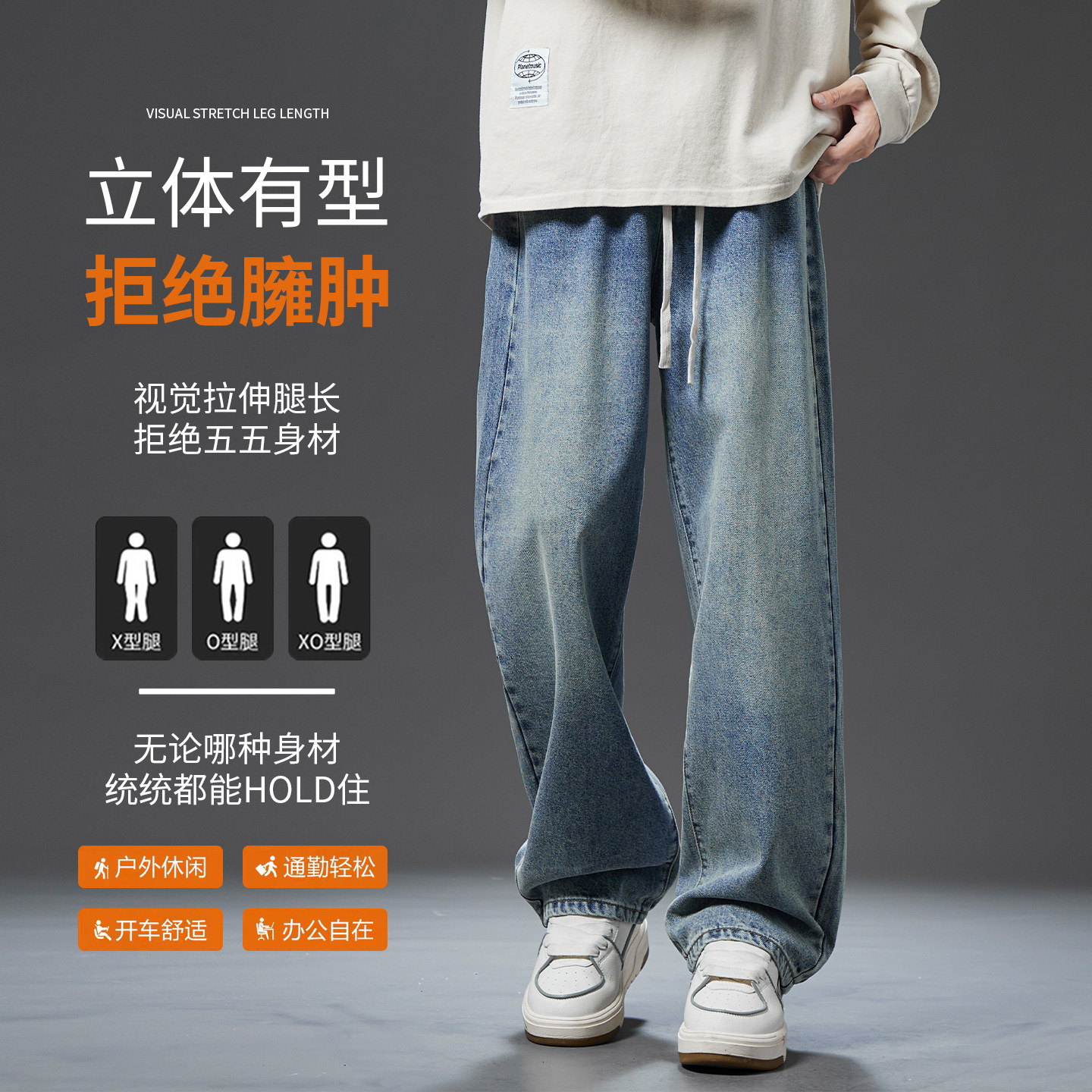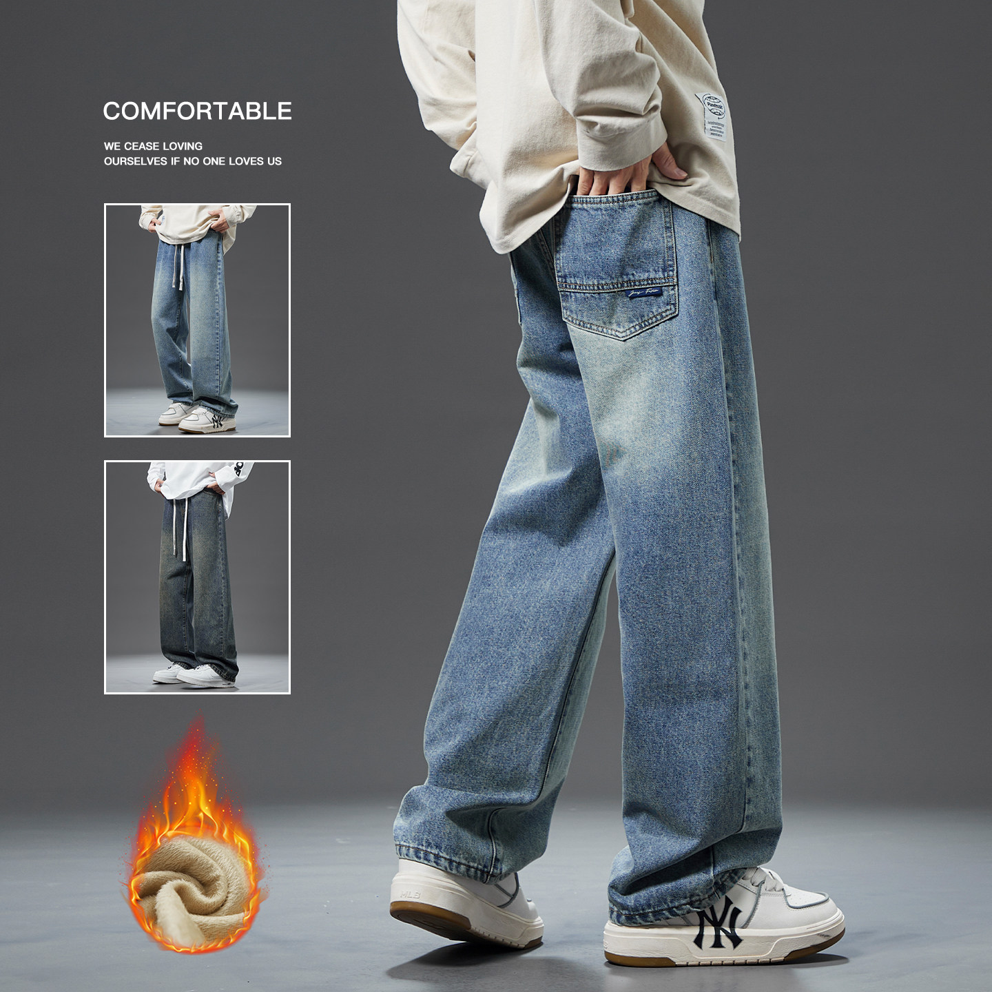 加绒加厚加长牛仔裤男款秋冬宽松阔腿男生vibe高个子青少年长裤子