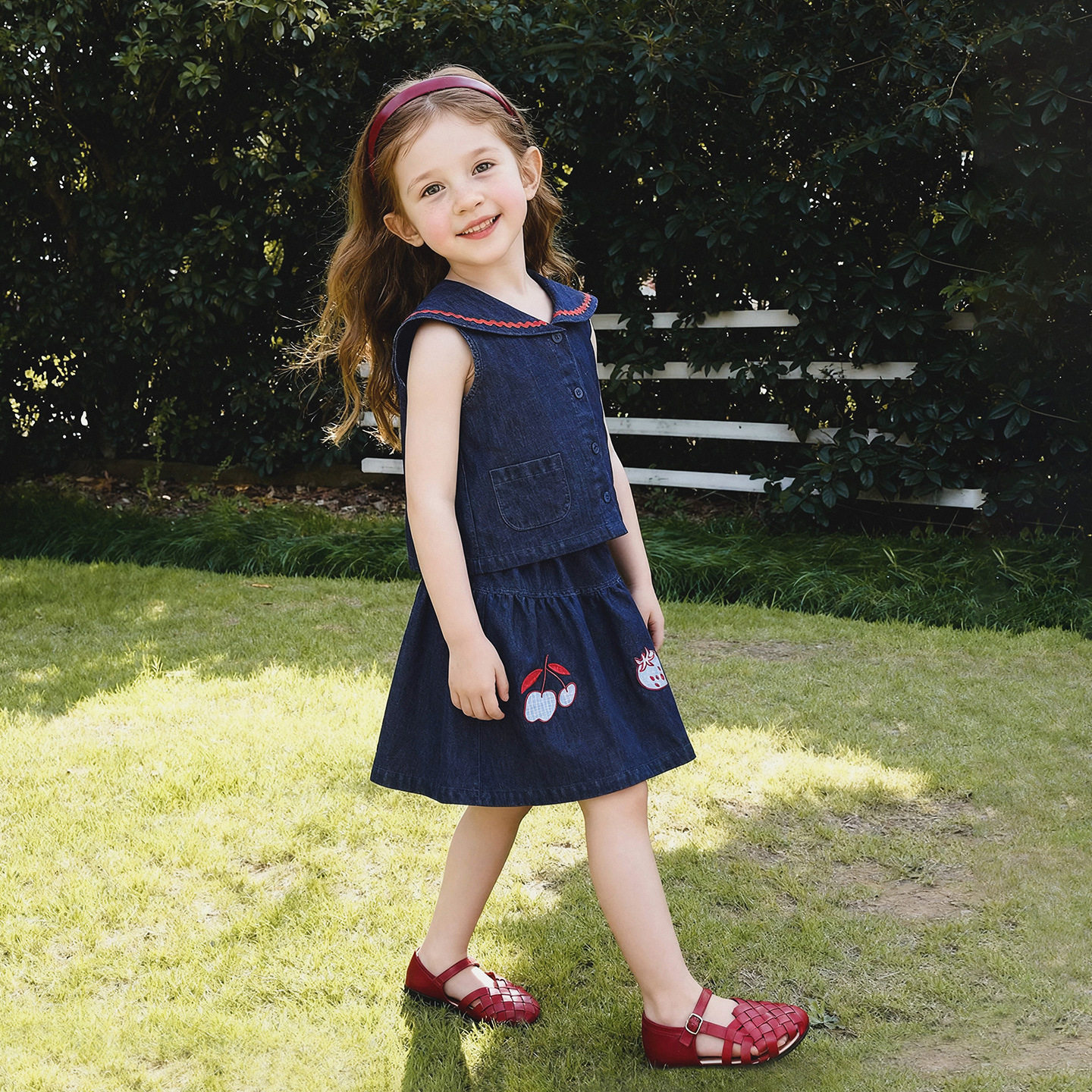 阿米拉童装2026年夏新款女童马甲裙子两件套装无袖夏季休闲刺绣