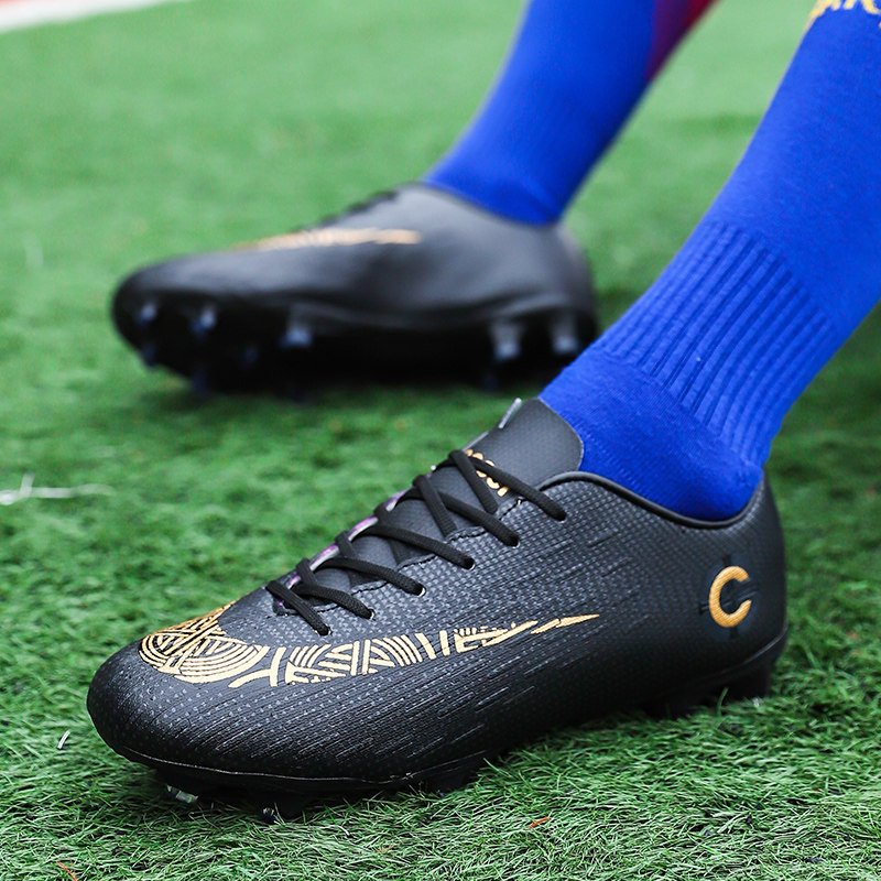 足球鞋碎钉C罗男鞋青少年梅西长钉训练鞋儿童人工草地AG学生男孩