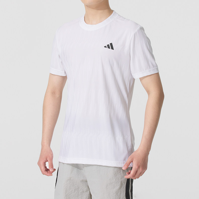 阿迪达斯男装健身训练服白色T恤长裤子跑步运动套装透气网球短袖