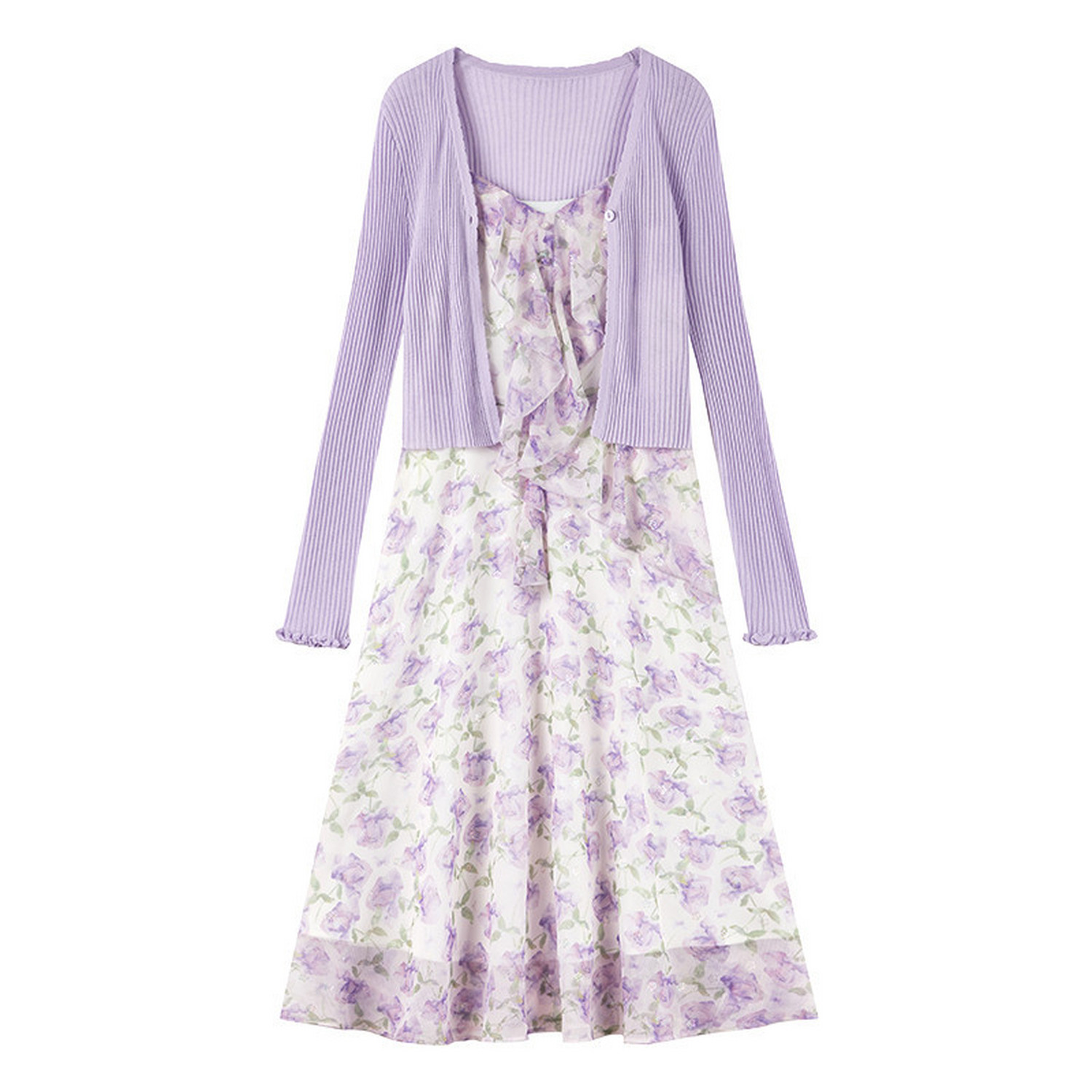 秋水伊人碎花连衣裙套装 2026年夏季新款女装A字裙时尚收腰两件套
