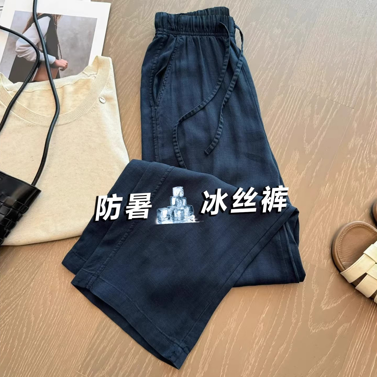 145小个子裤子女款阔腿裤夏季薄款八分显瘦直筒宽松慵懒风休闲裤9