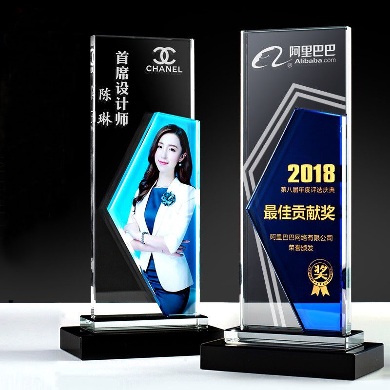照片奖杯定制公司年会颁奖船帆奖杯定做保险月度带彩印奖业绩冠军