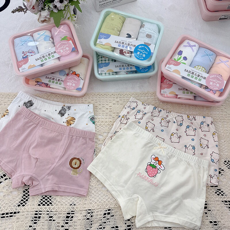 豆妞IAMDOU 100-170码三条儿童纯棉内裤无骨平角裤男女童盒装底裤