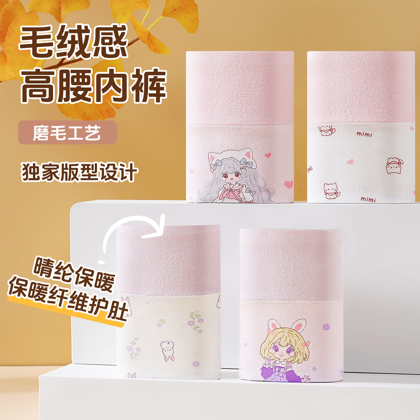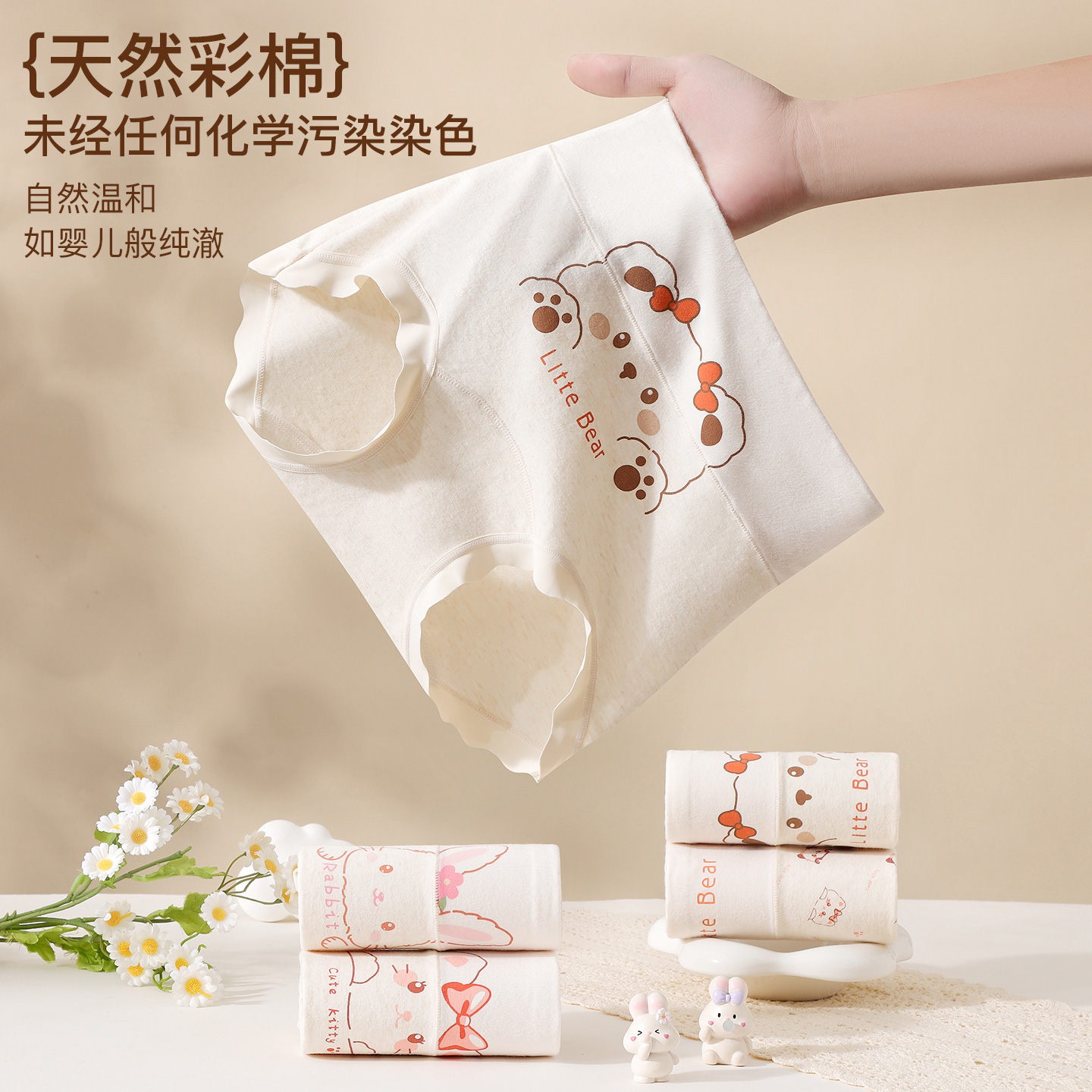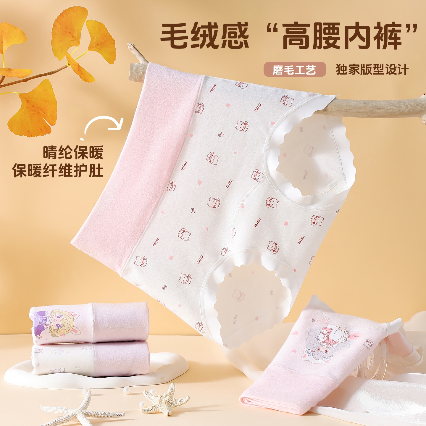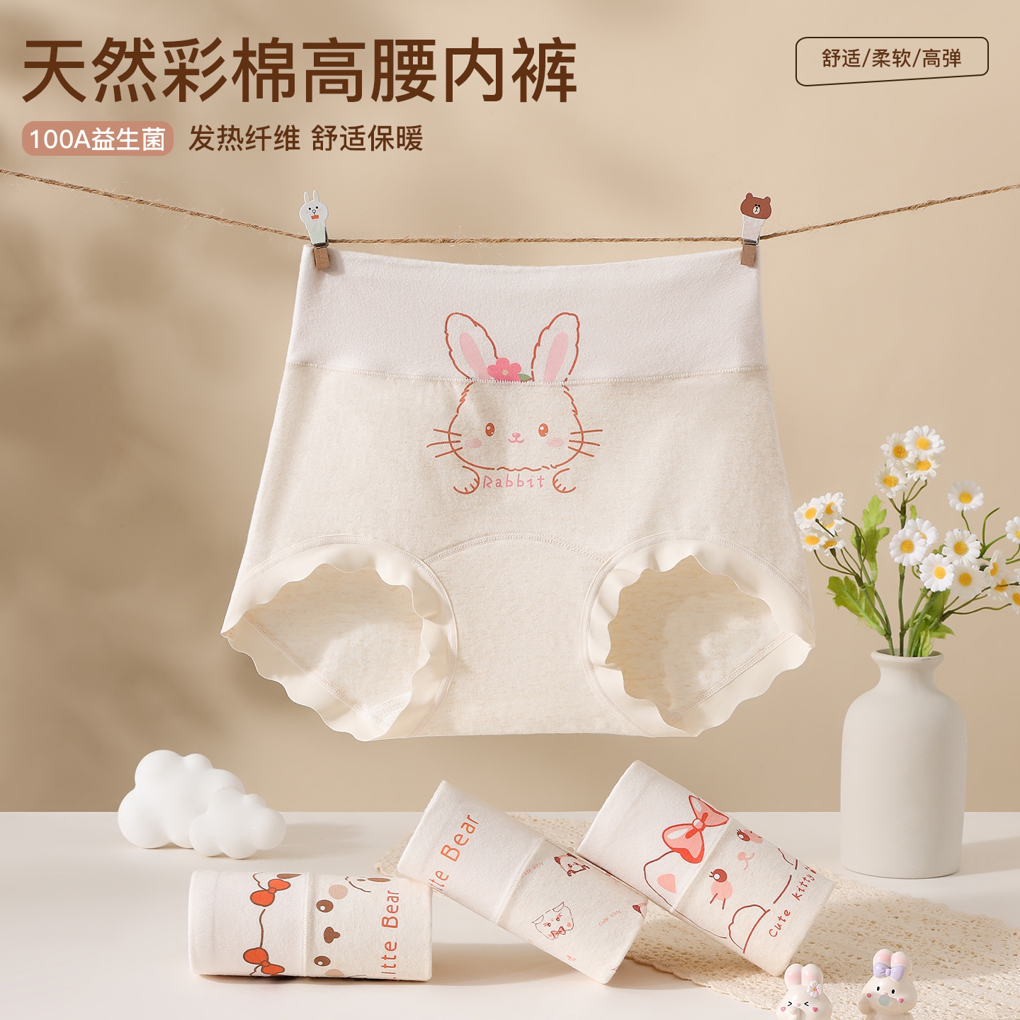 好产品高腰护肚子纯棉内裤天然彩棉100A益生菌女童小平角裤605-T6
