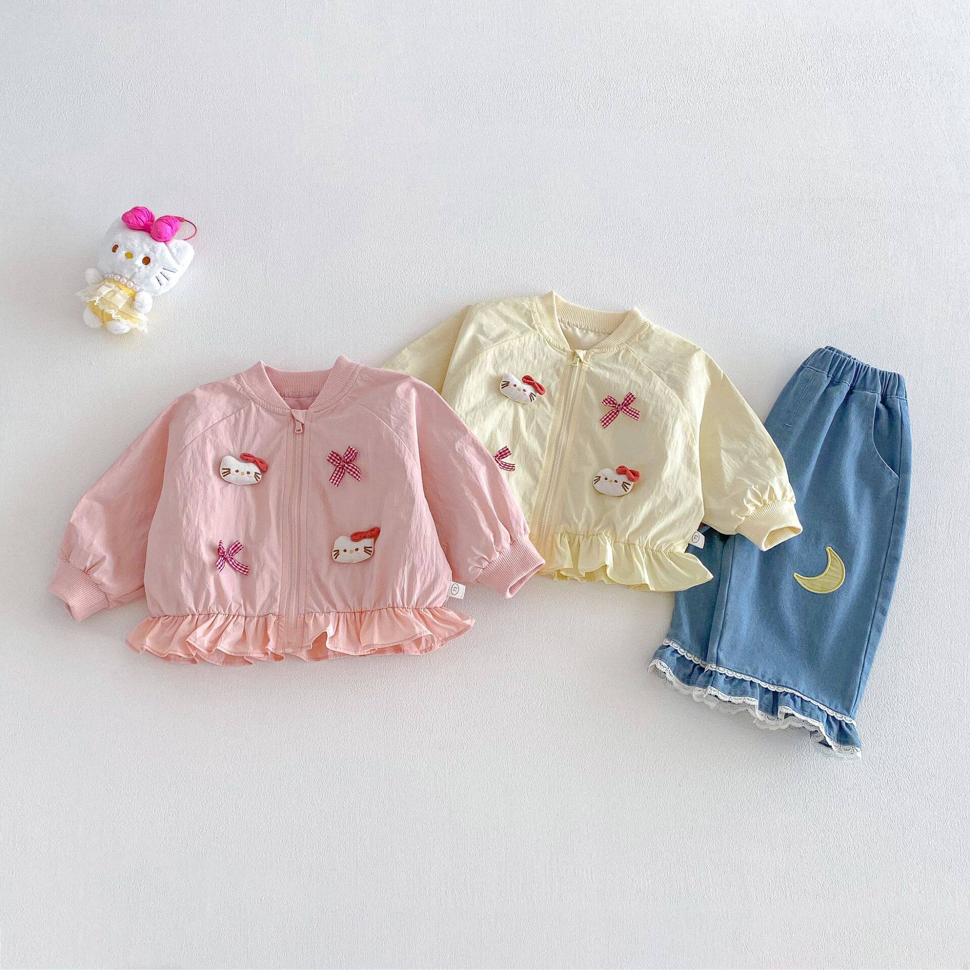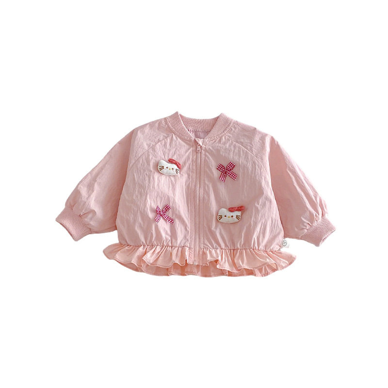 女童猫咪外套2026新款春季宝宝洋气蝴蝶结花边上衣儿童韩版春装潮