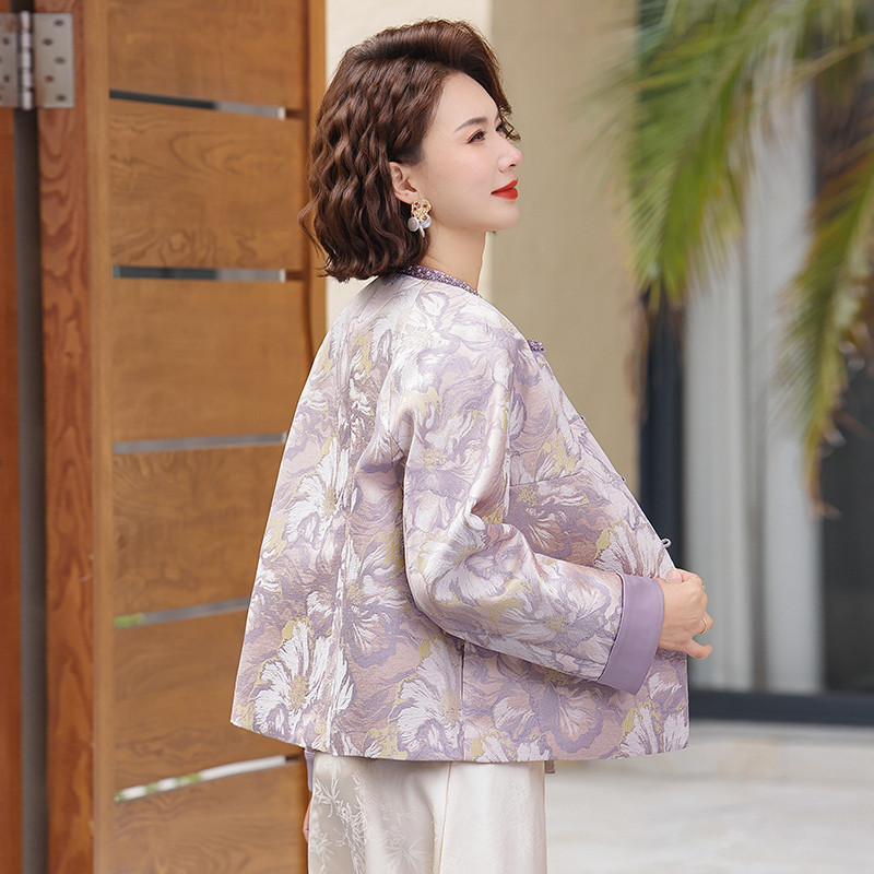 国风妈妈春装外套薄款中老年人女款春秋夹克衫阔太太洋气高贵上衣