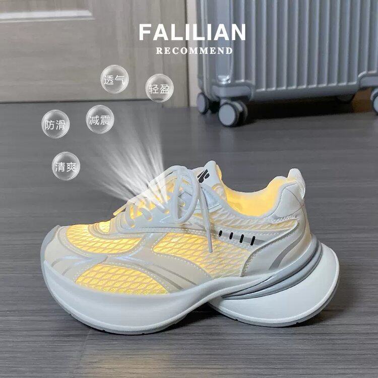 网面运动鞋女款2025新款春夏季增高厚底老爹鞋跑步减震轻便休闲鞋