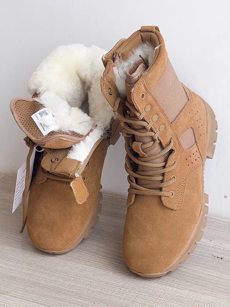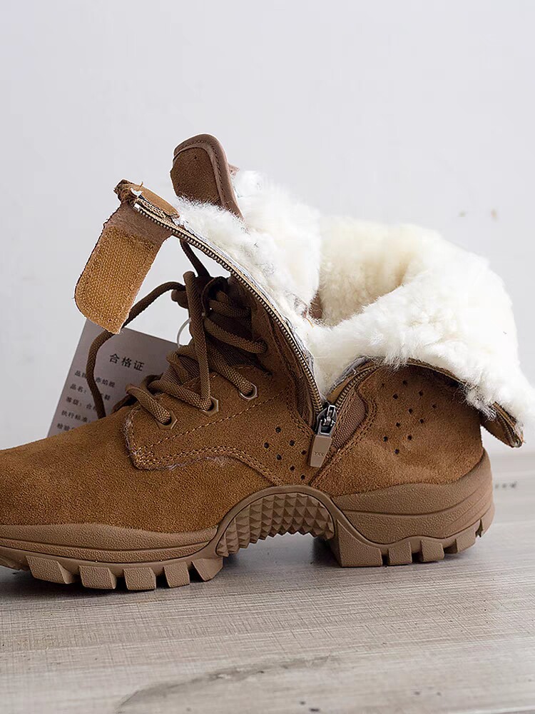 冬季棕色训练靴男款冬季加绒加厚户外真皮羊毛靴子新款轻便防寒靴
