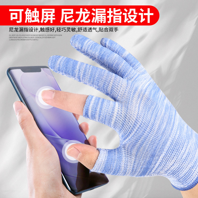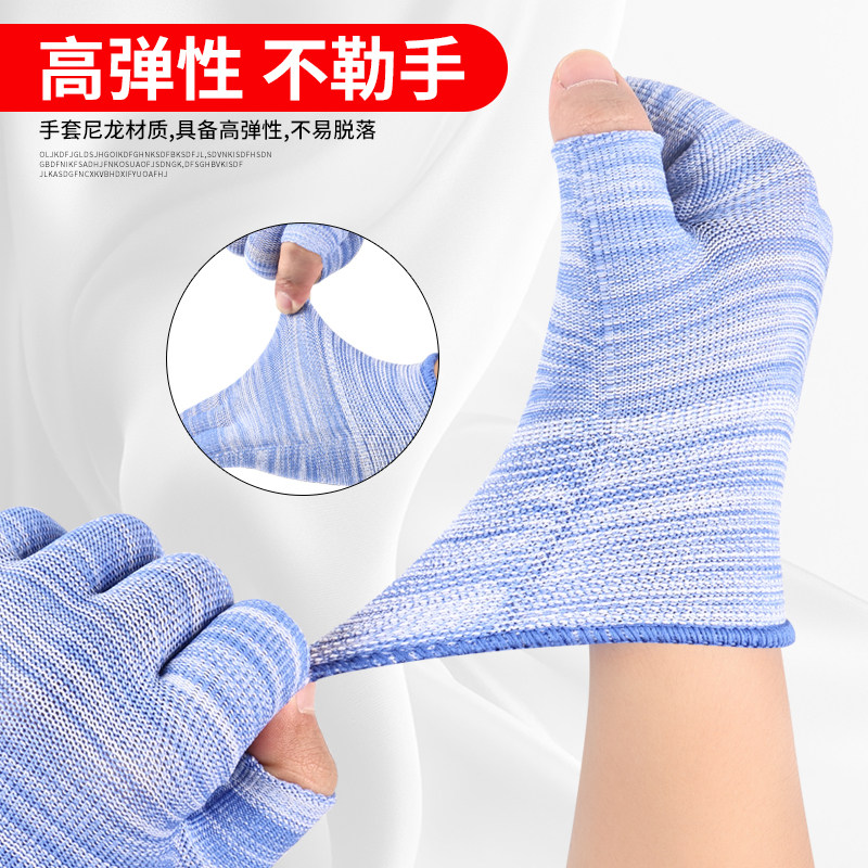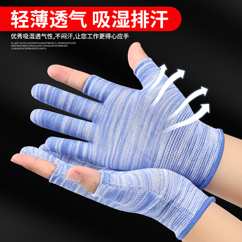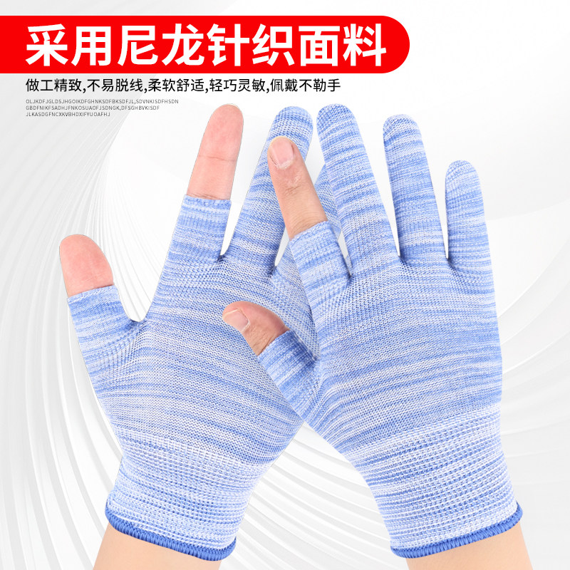 311线报网描述:手套劳保耐磨工作透气尼龙漏二指夏季薄款