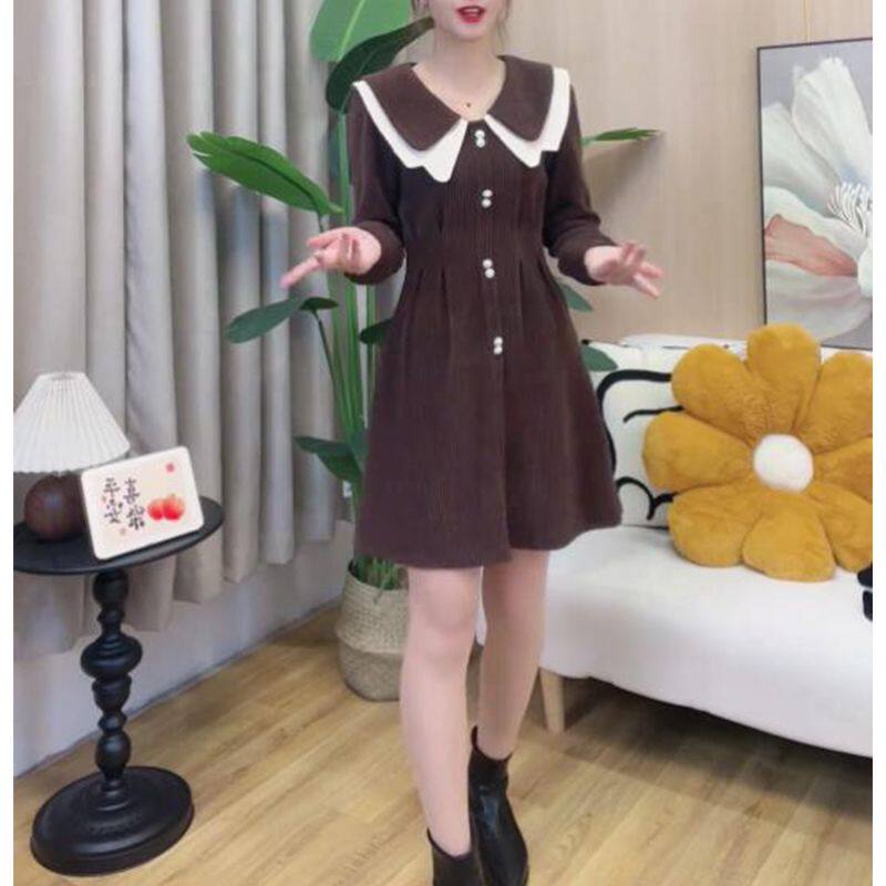 法式娃娃领连衣裙女2026早春季新款气质小个子洋气显瘦长袖裙子
