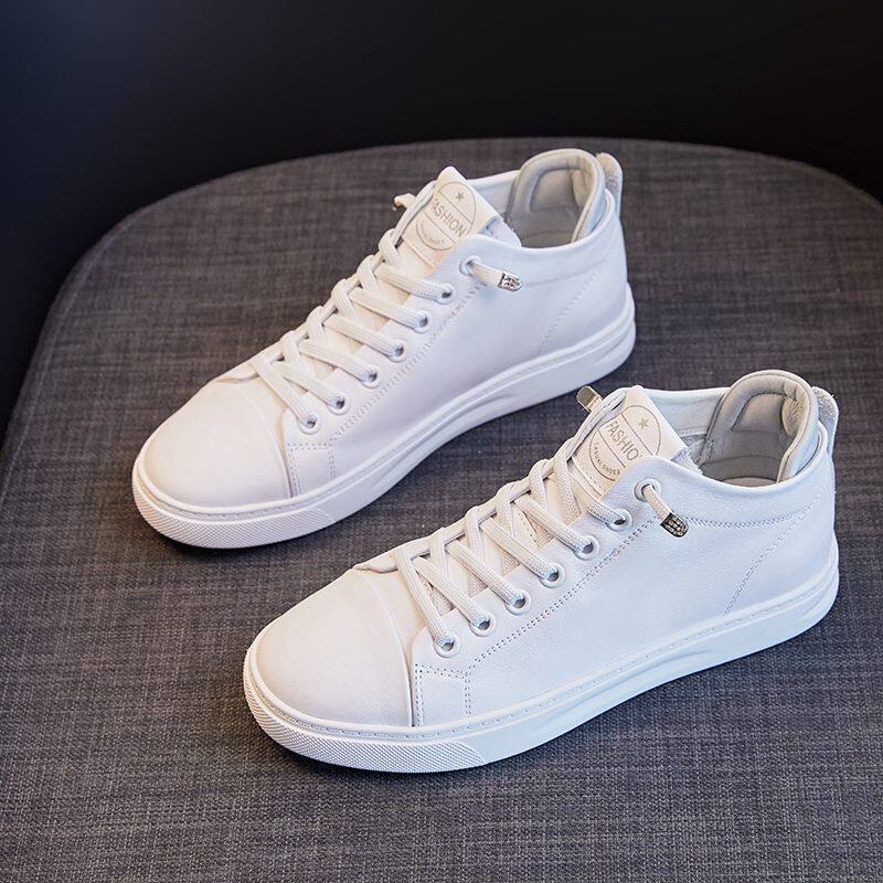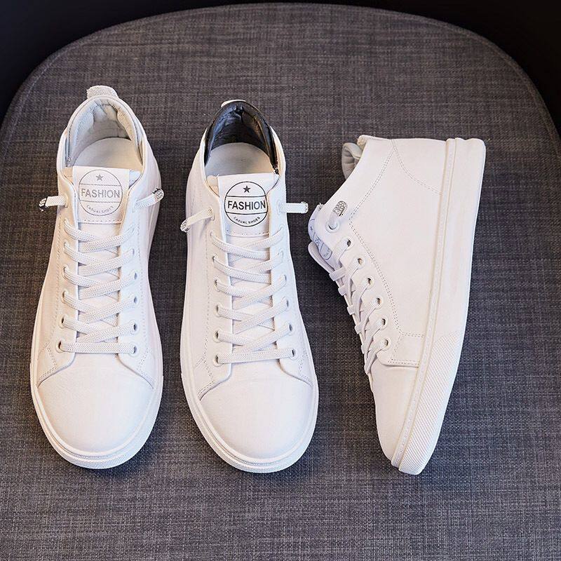 头层牛皮高帮鞋女2026新款平底运动女鞋韩版真皮小白鞋简约高级