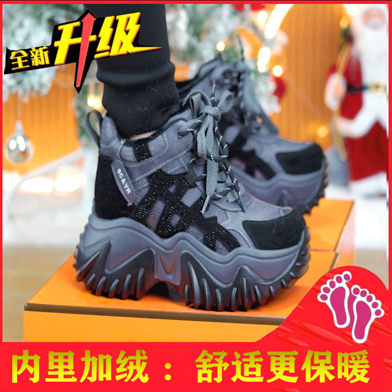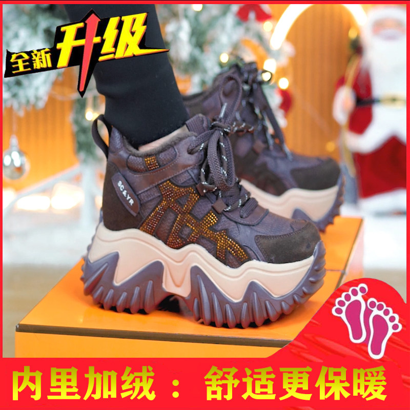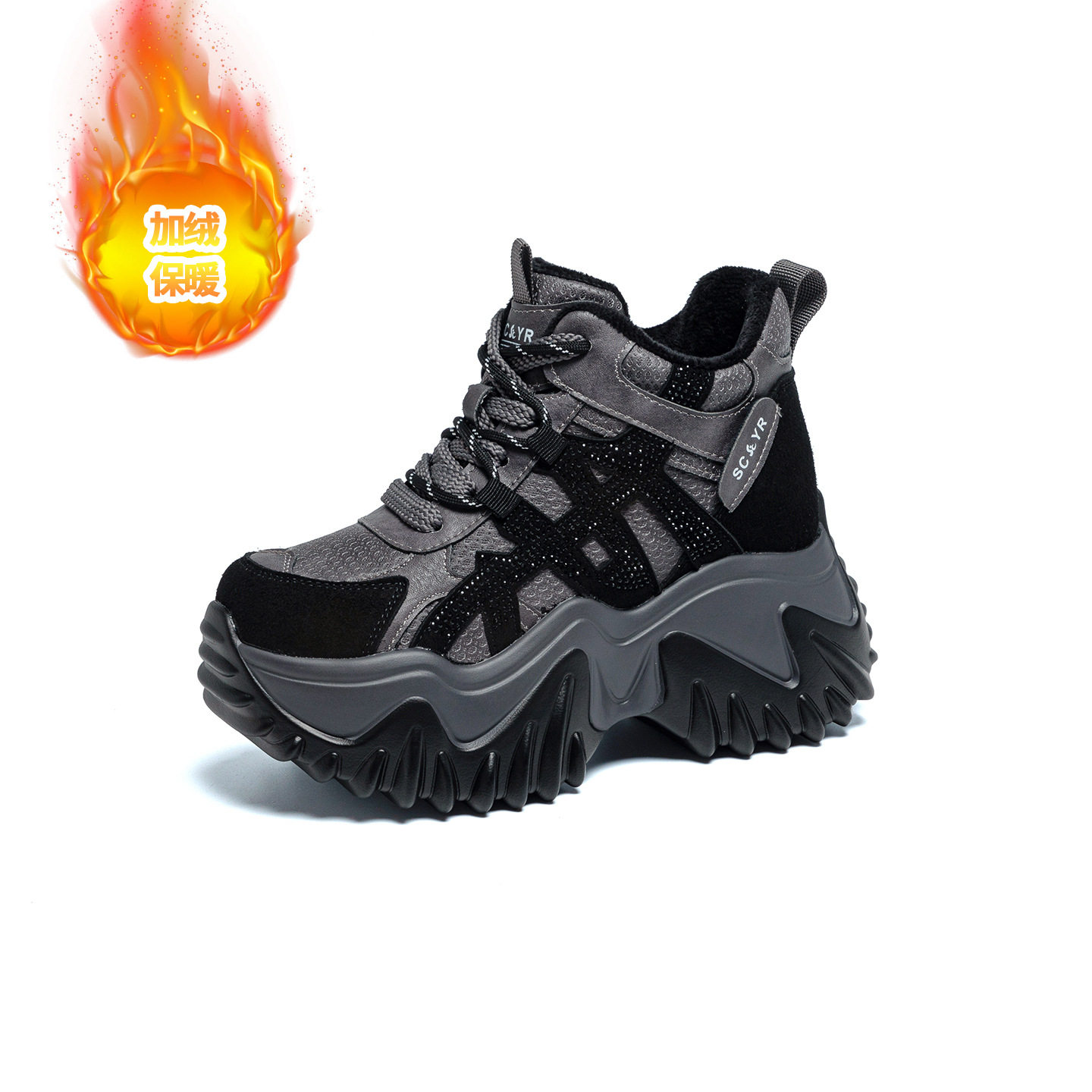8cm小个子加绒厚底老爹鞋女2025冬季休闲百搭加厚保暖内增高女鞋