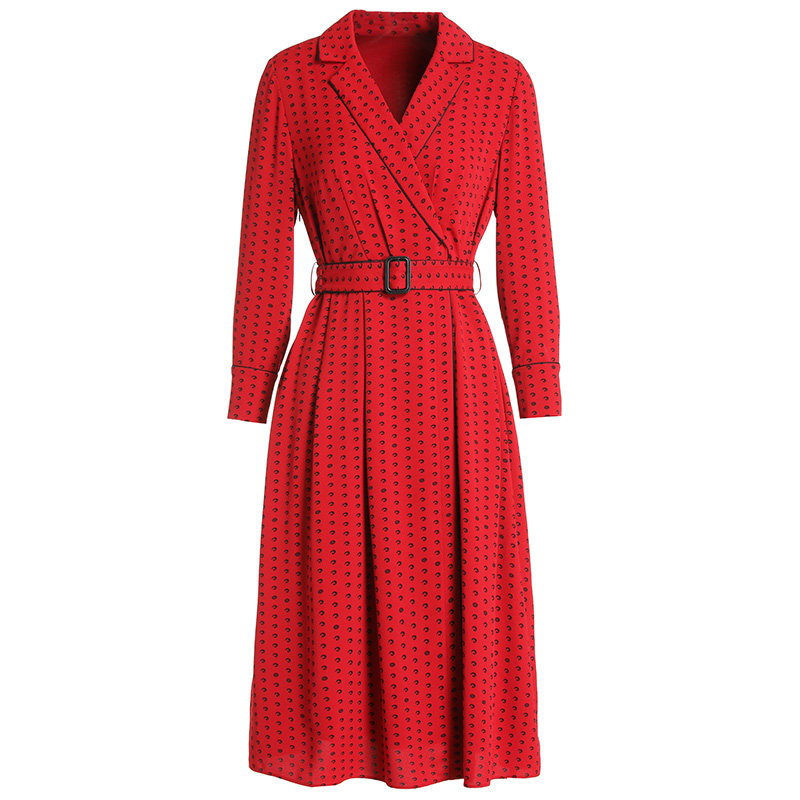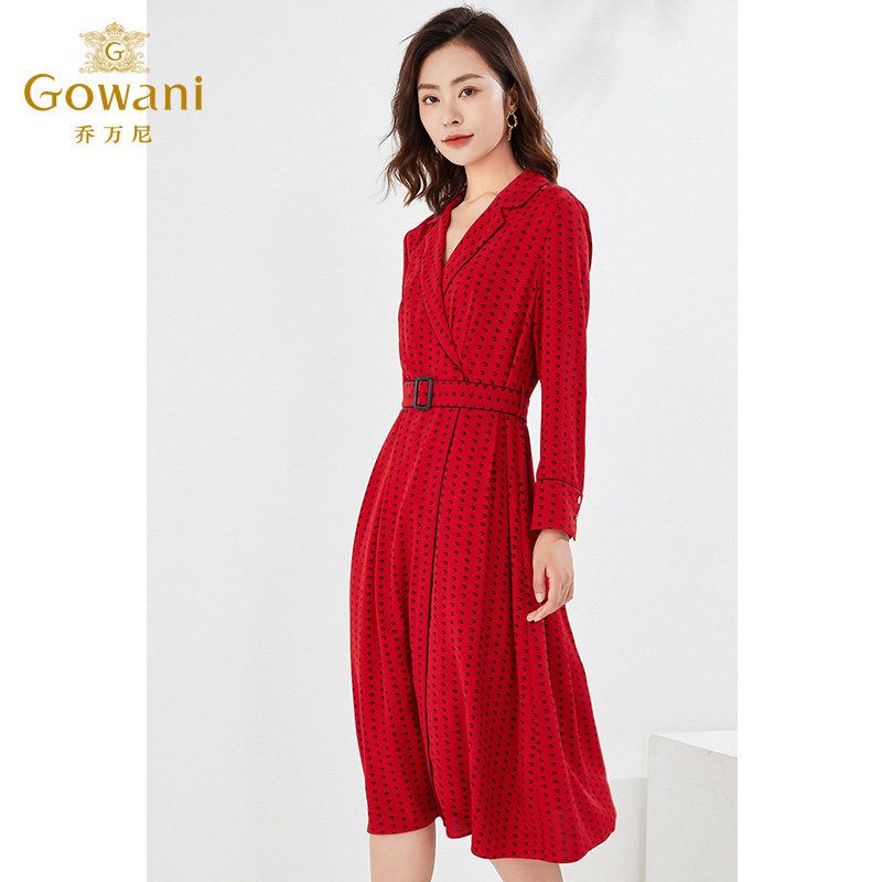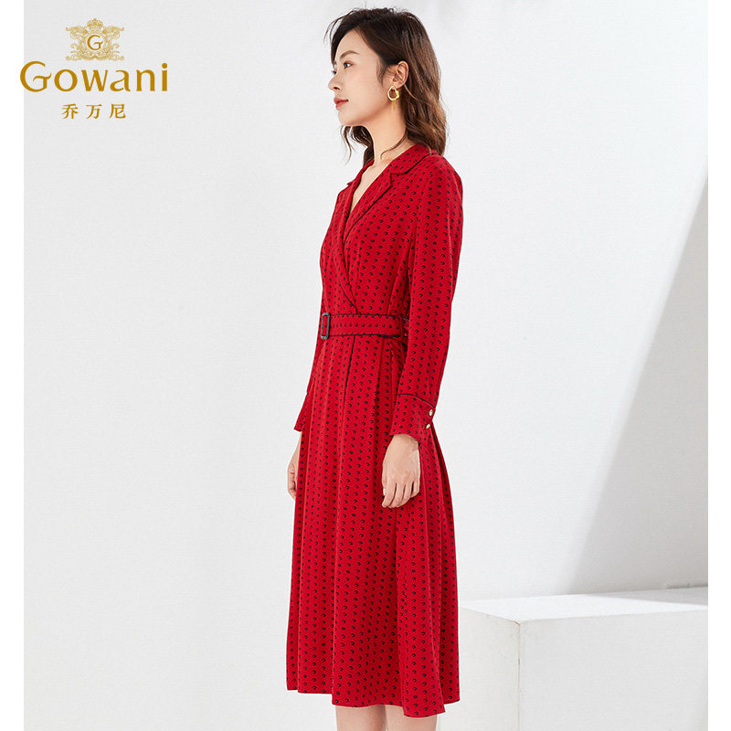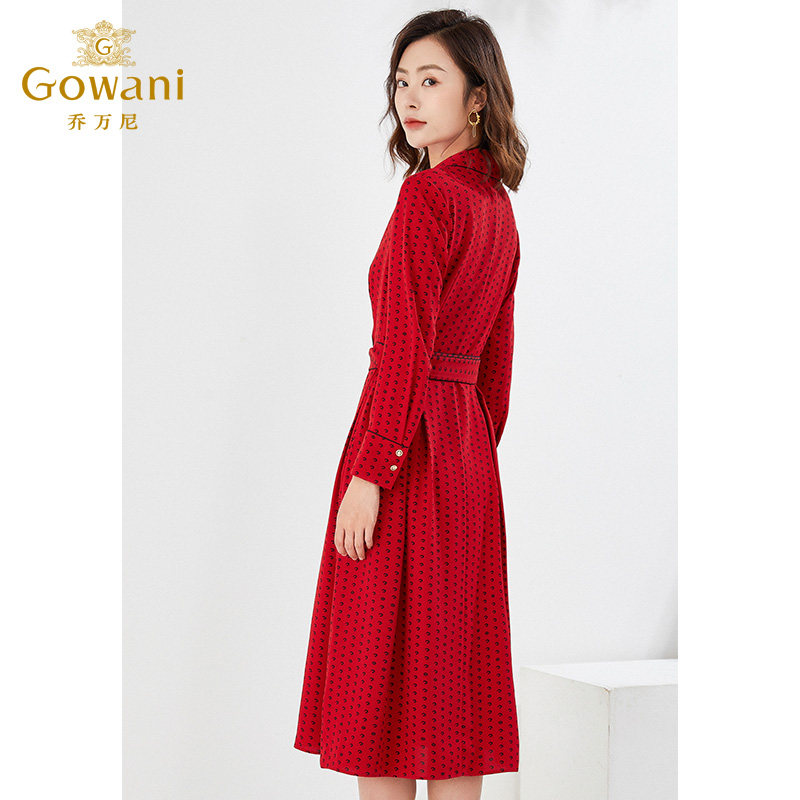 乔万尼红色长袖收腰连衣裙春装商场同款长裙气质中长款EI3E123