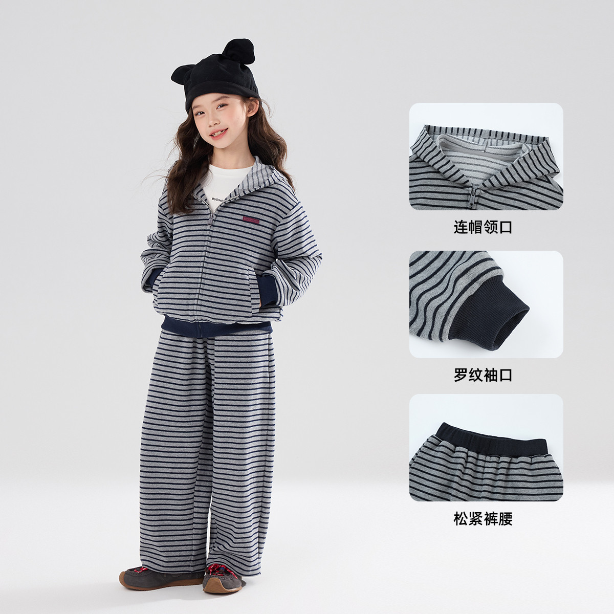 布丁哈鲁春装女童童装套装2026春季新款儿童韩系休闲条纹两件套