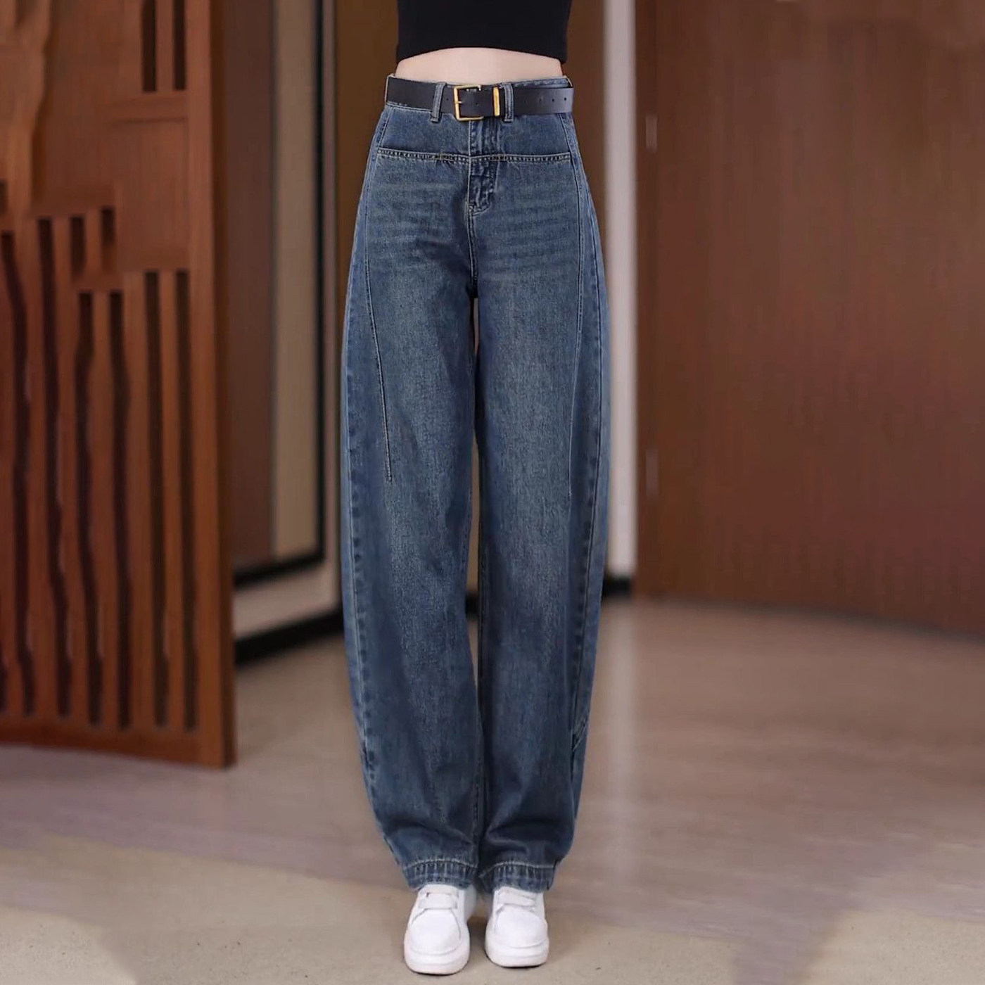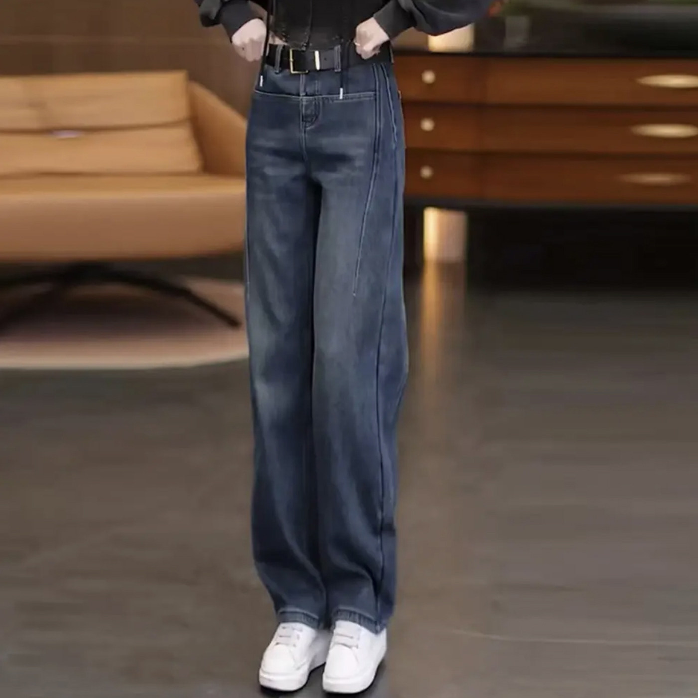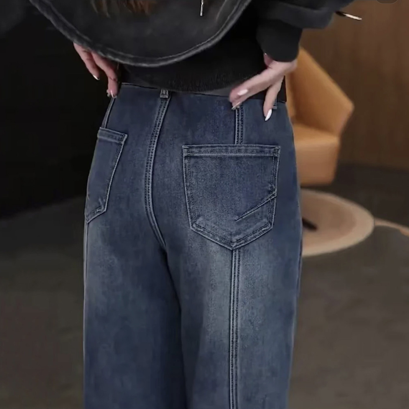 弯刀牛仔裤女秋冬2025新款今年流行爆款小个子加绒加厚直筒阔腿裤