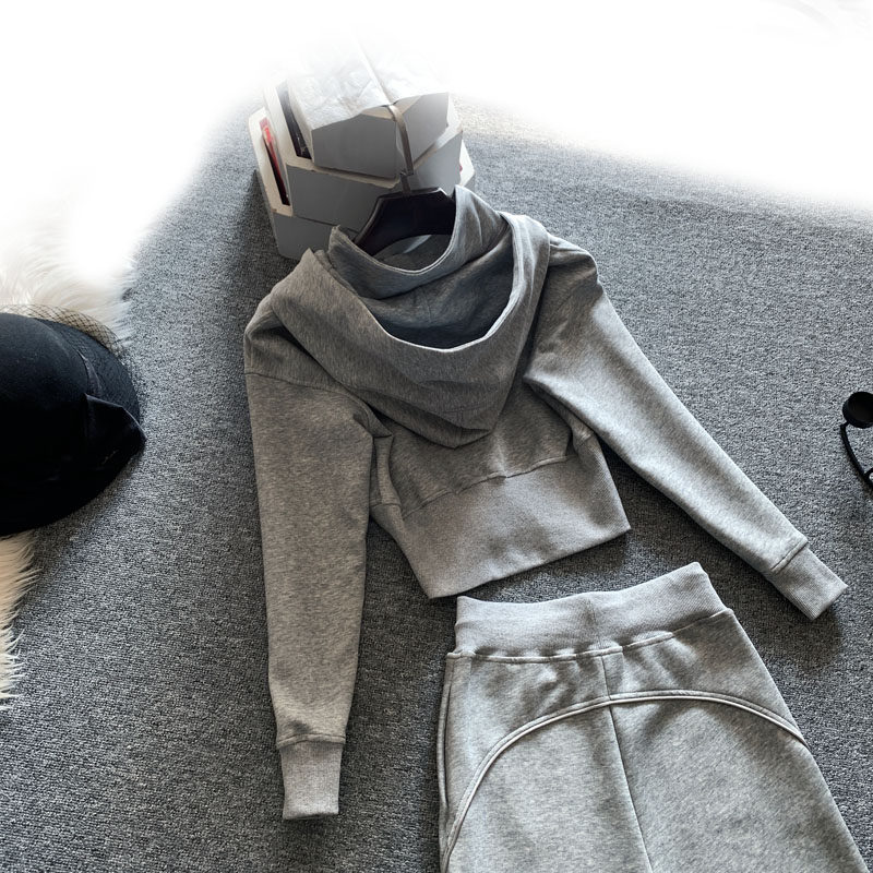 休闲运动时尚套装女春季2026新款搭配连帽卫衣短款阔腿裤两件套潮