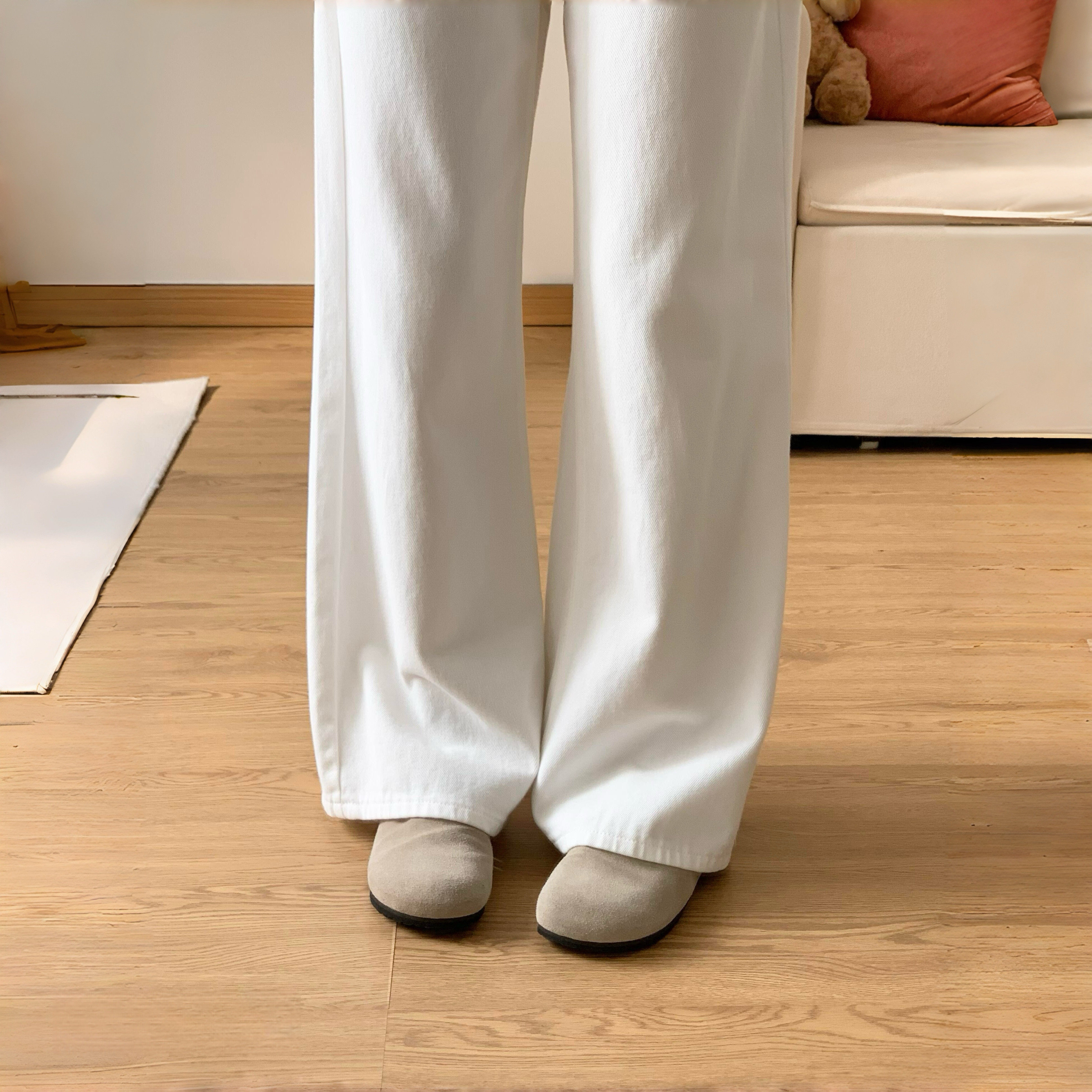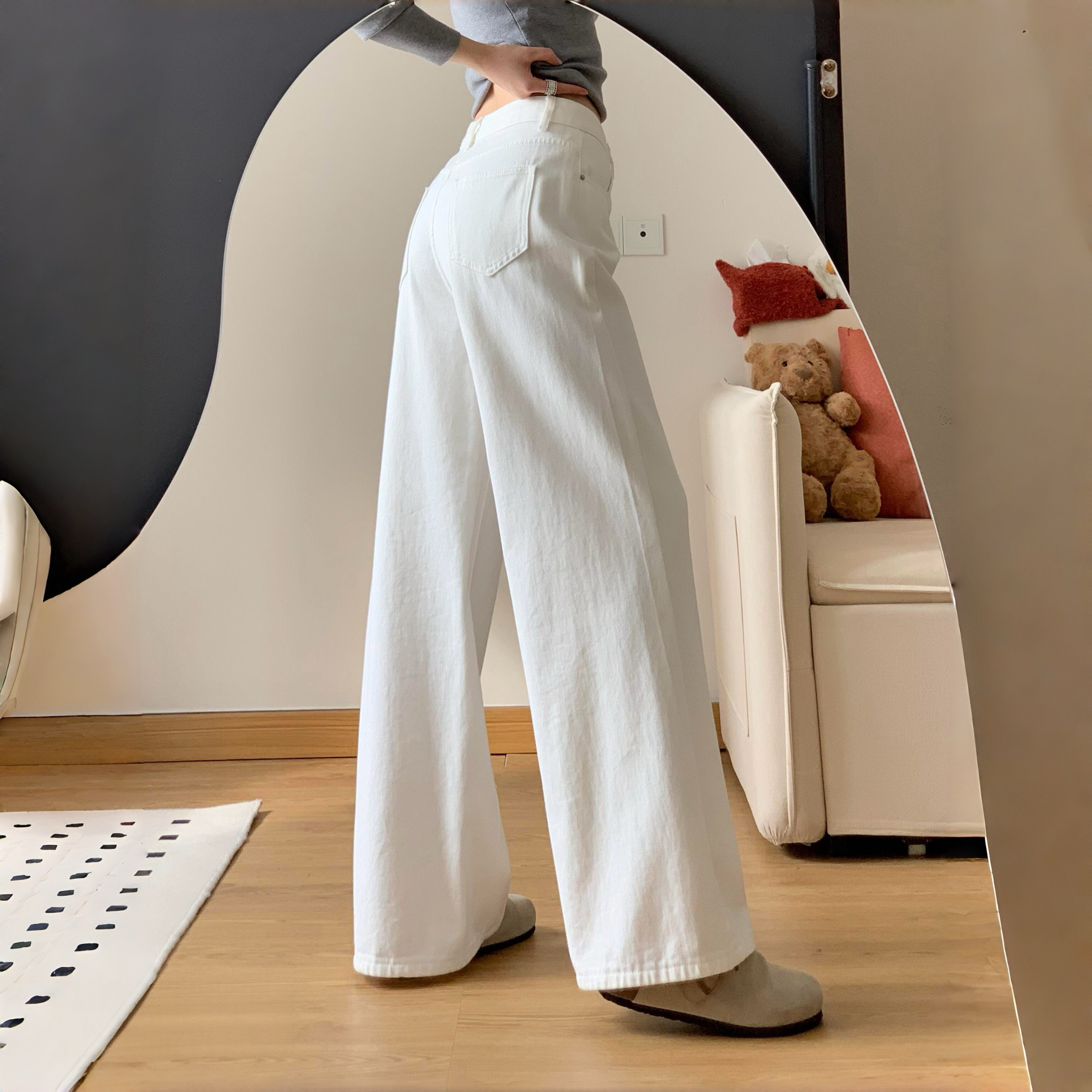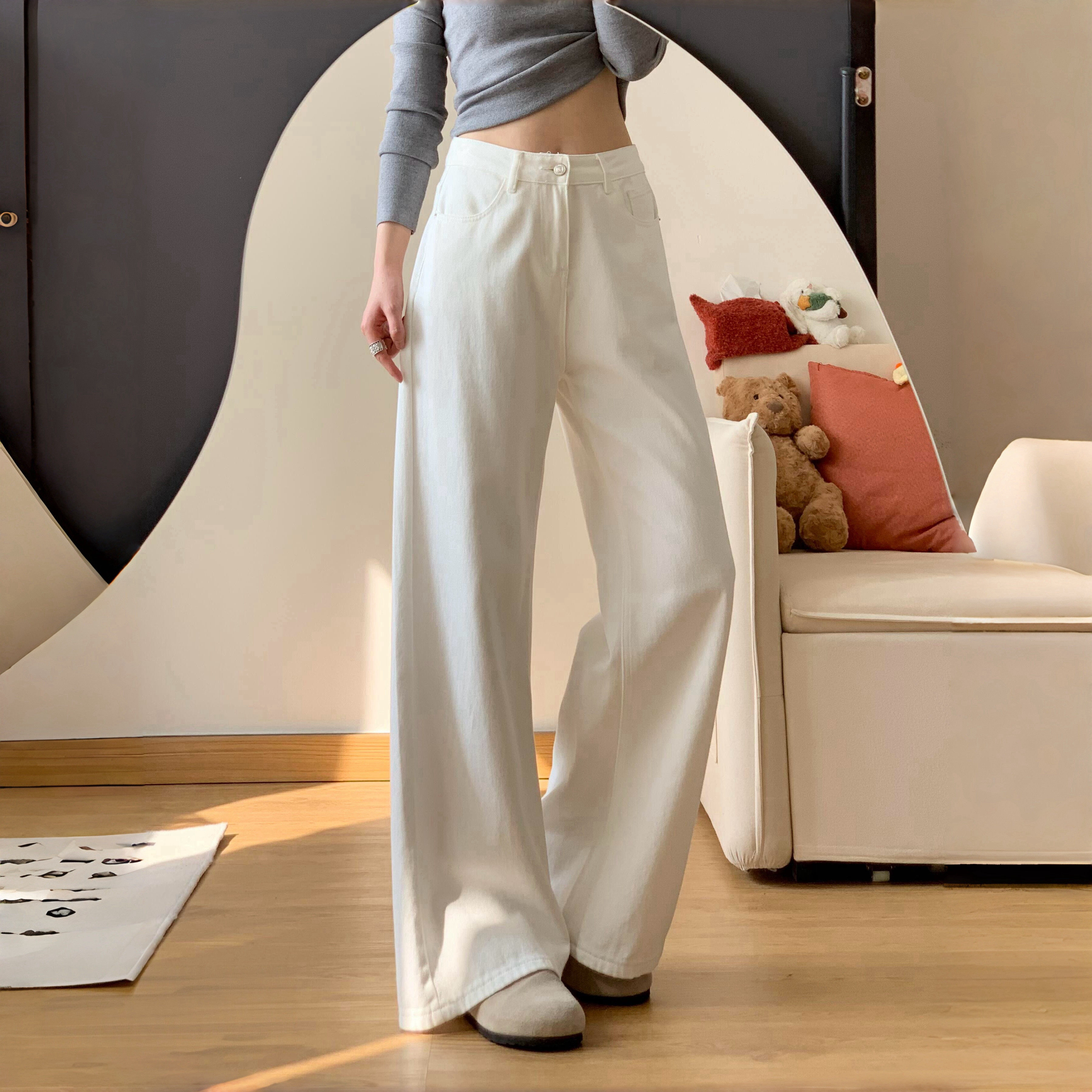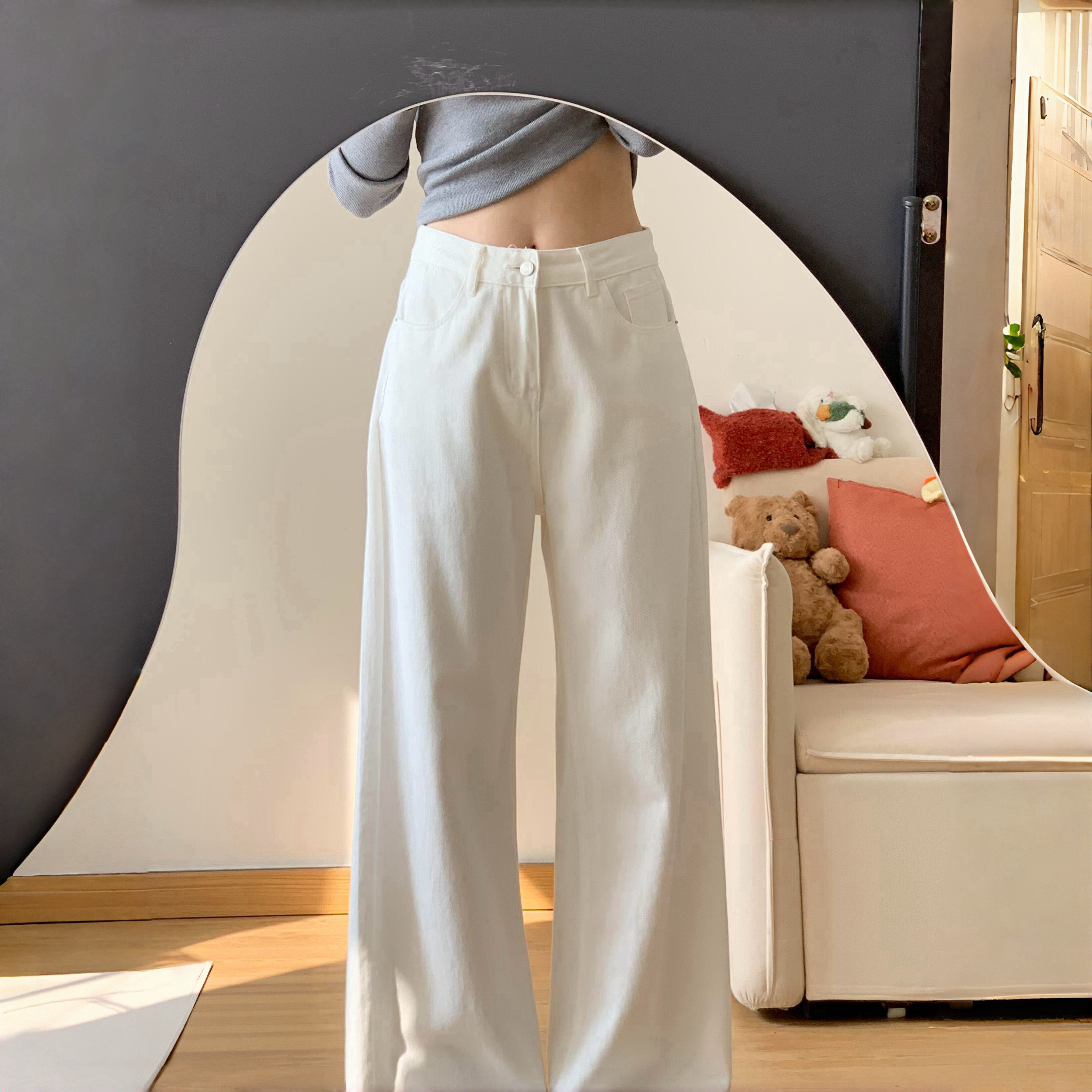白色裤子女款直筒牛仔裤胖mm大码春季高腰显瘦宽松垂感休闲阔腿裤