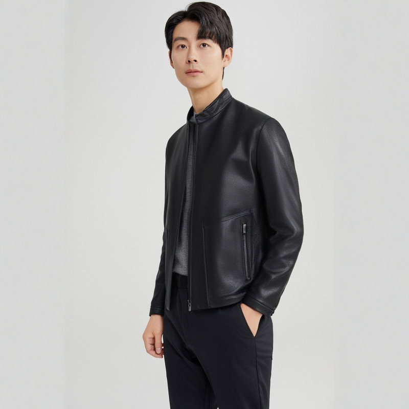 【山羊皮】圣得西立领真皮皮衣男款2026新款春季高端商务夹克外套