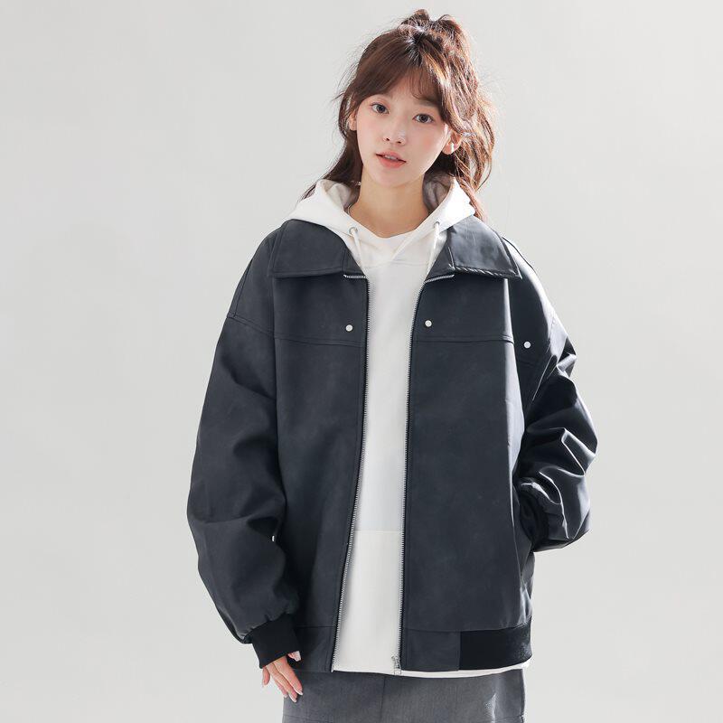 2026年春季新款男款潮牌翻领皮衣男士时尚百搭宽松休闲外套