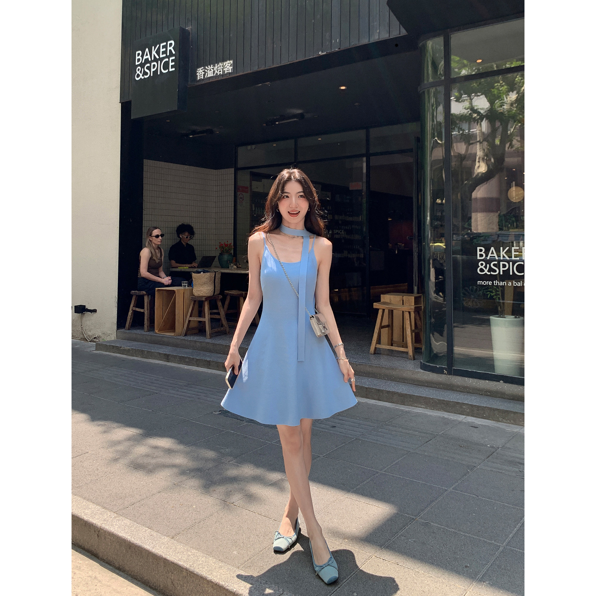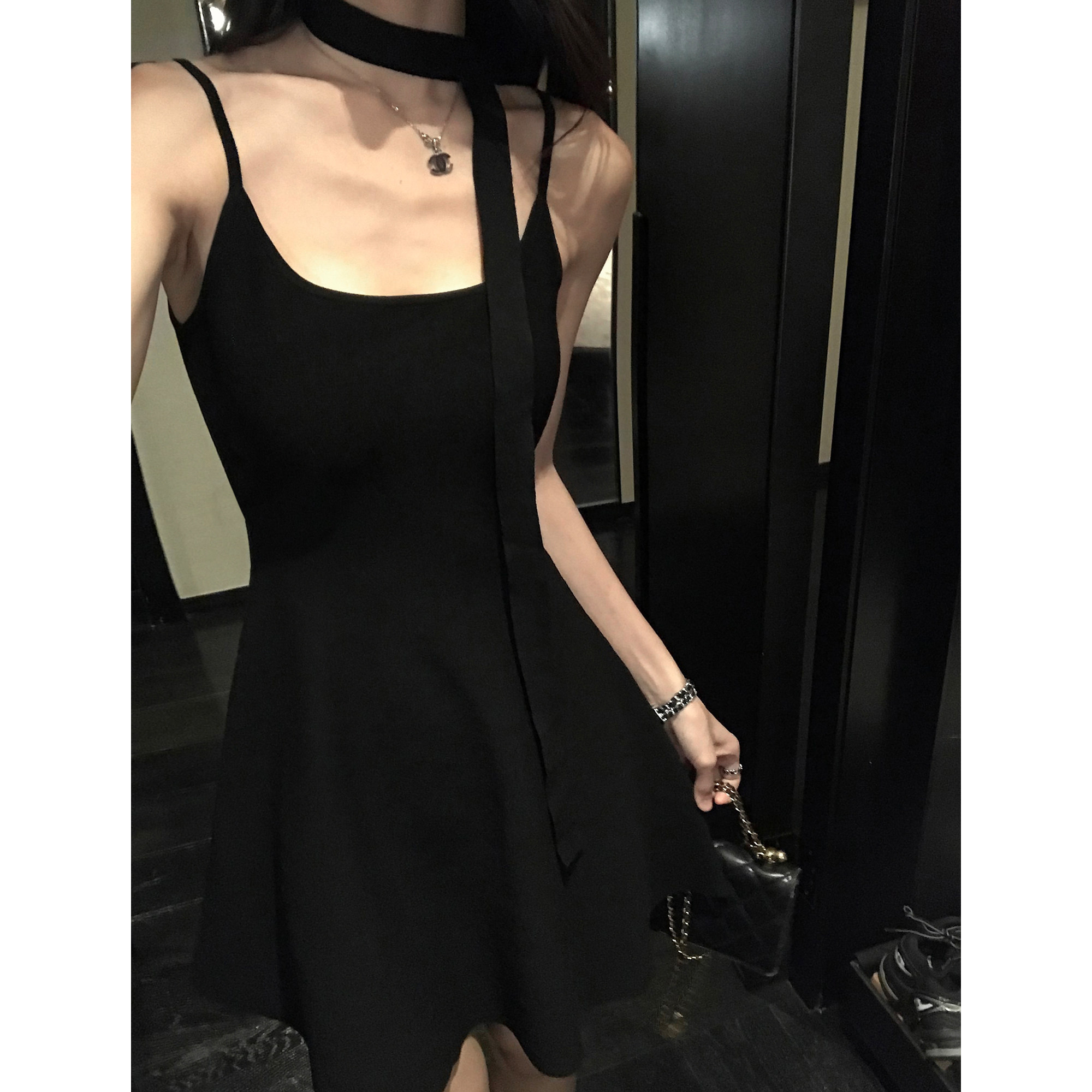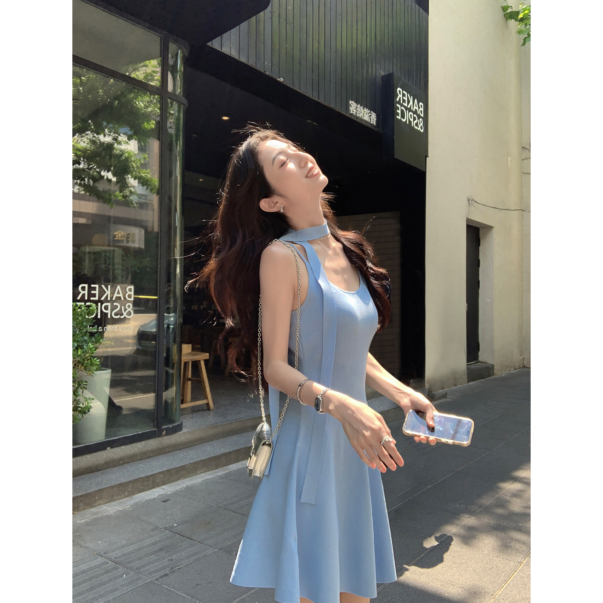 MULVAN 轻熟姐姐系~针织吊带连衣裙女夏季短款修身可拆飘带百褶裙