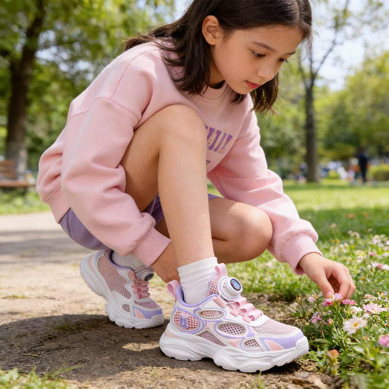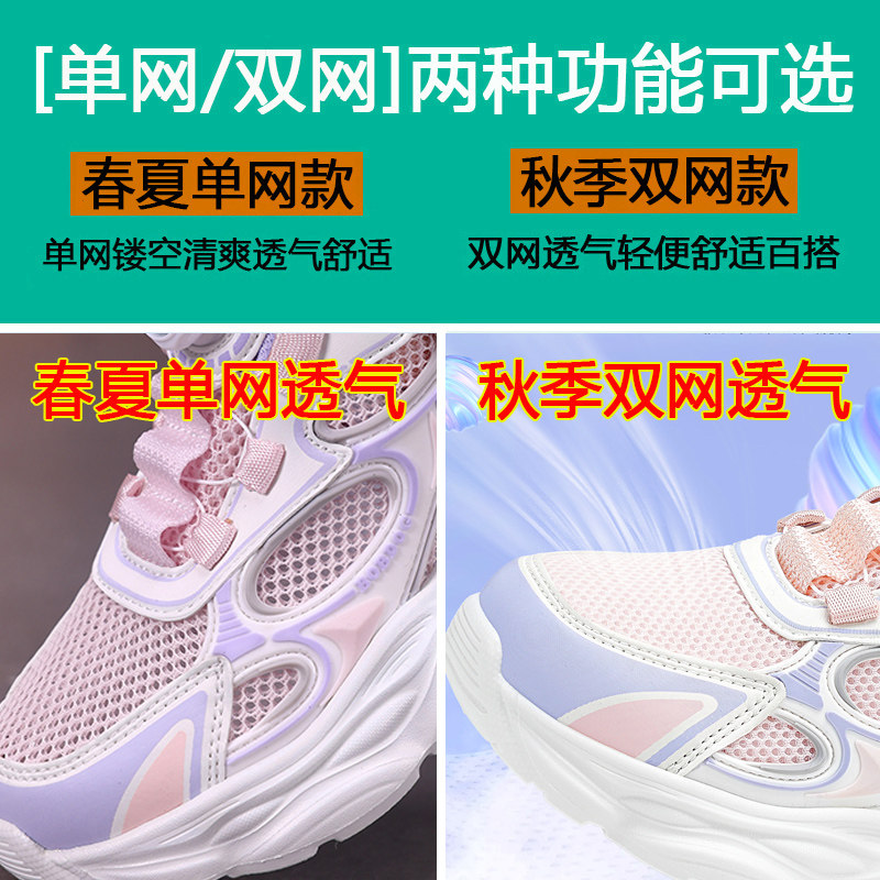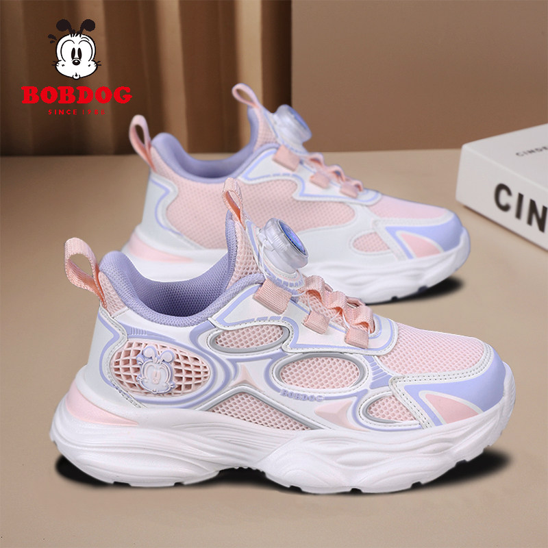 巴布豆女童鞋子春季2026新款网面透气网鞋学生女孩单网儿童运动鞋