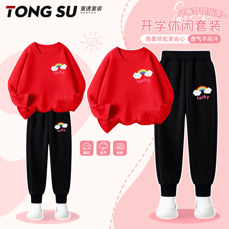 女童春装套装2026新款薄款女孩超好看长袖t恤休闲两件套儿童衣服
