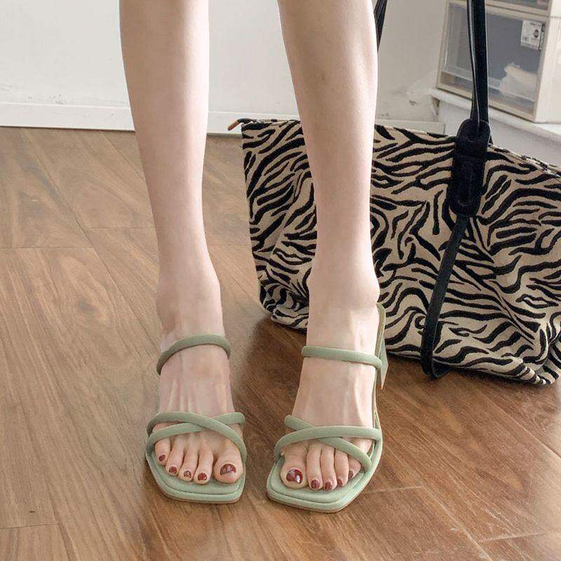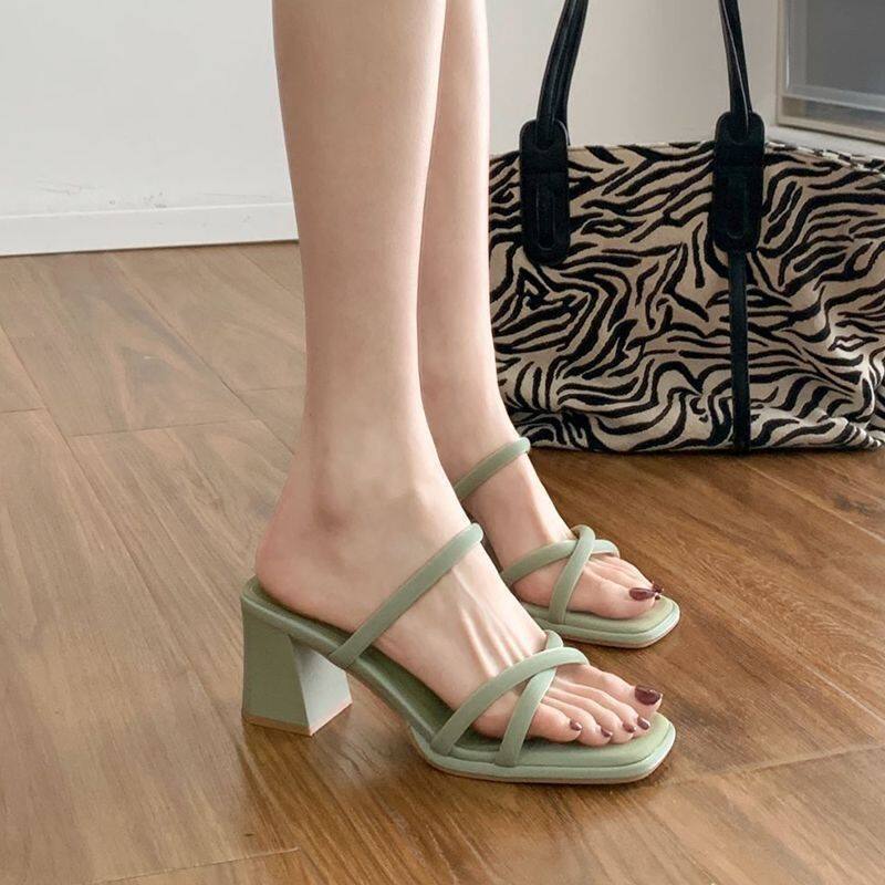 法式粗跟凉鞋女夏季外穿鞋子女款2026新款一字带配裙子高跟凉拖鞋