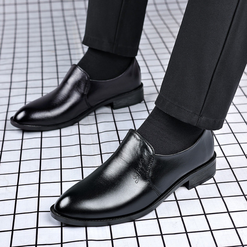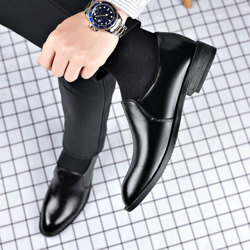 青年皮鞋男士商务正装英伦韩版休闲尖头套脚内增高一脚蹬百搭男鞋