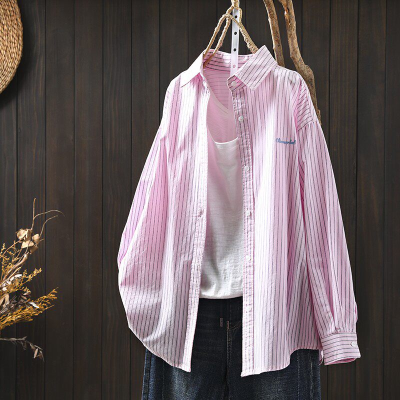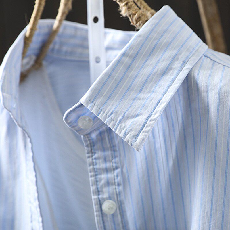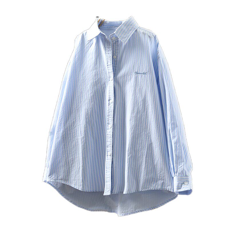 衬衣女款2026新款爆款条纹蓝色衬衫外套春装纯棉长袖外搭休闲上衣