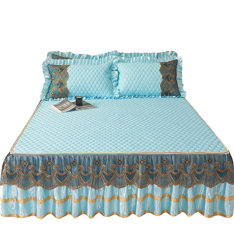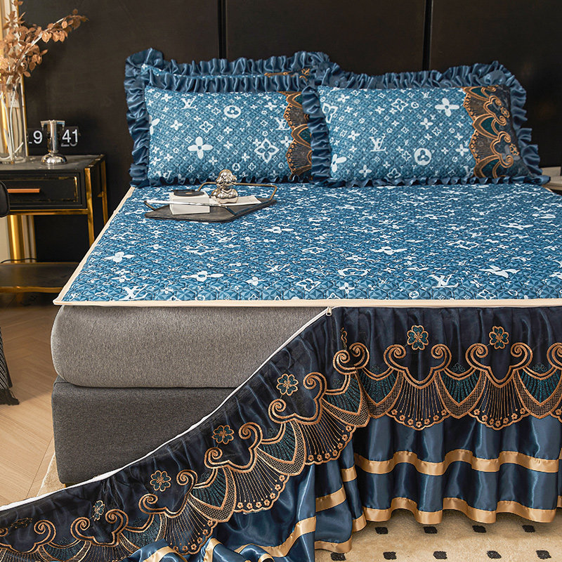 夏季床上乳胶凉席四件套夏天可机洗冰丝席三件床裙款防滑带空调被
