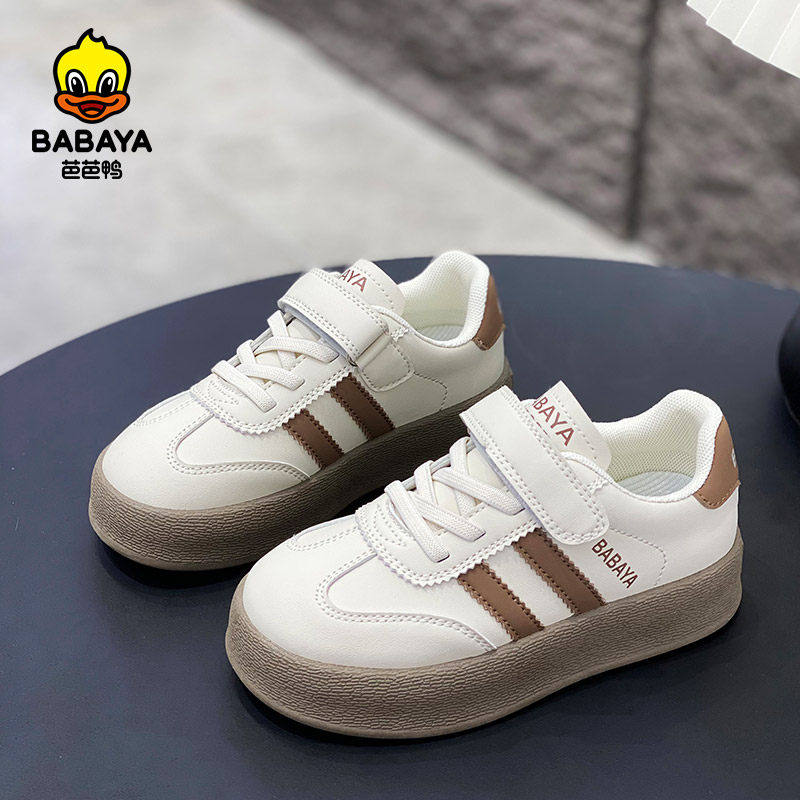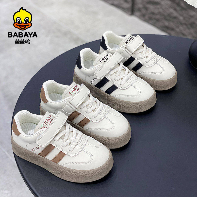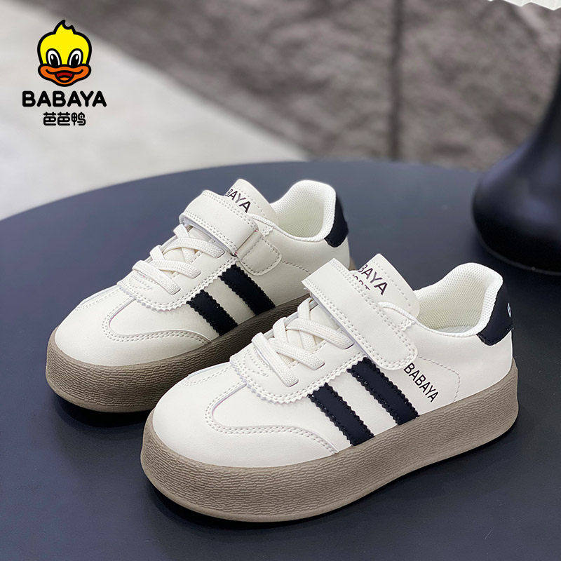 芭芭鸭男童鞋板鞋子2026春款儿童防滑运动鞋女童百搭德训鞋小白鞋