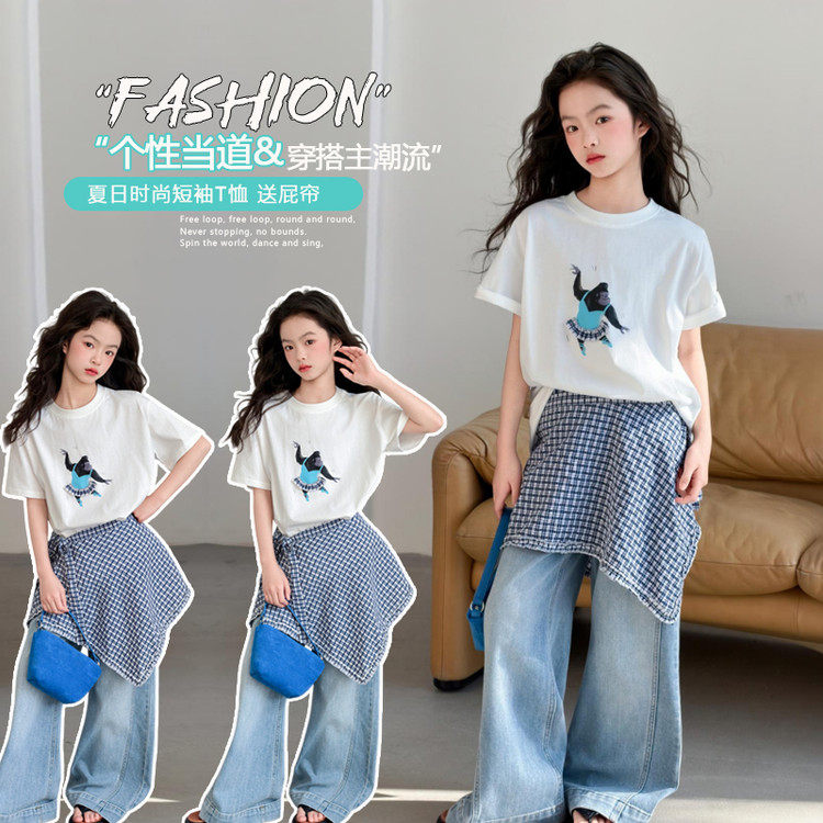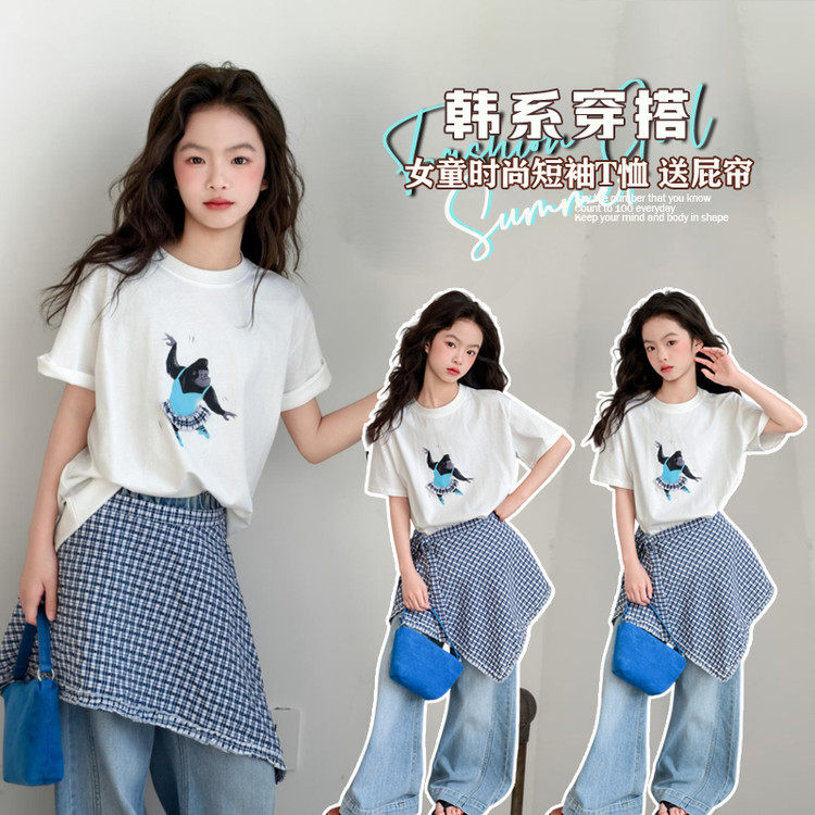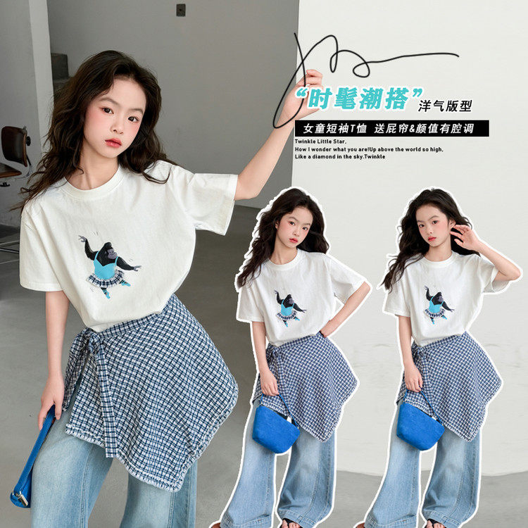 韩版女童短袖T恤夏季圆领印花洋气休闲上衣卡通风2026透气薄款