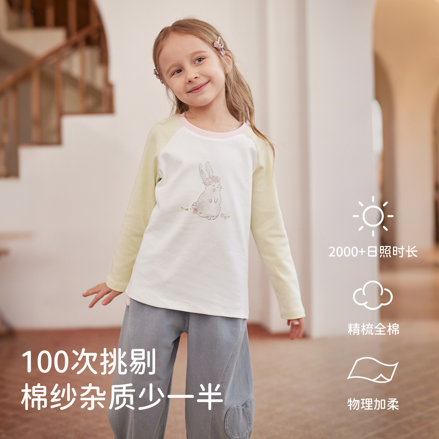 戴维贝拉儿童长袖T恤2026春装新款女童男童宝宝上衣纯棉打底衫A类