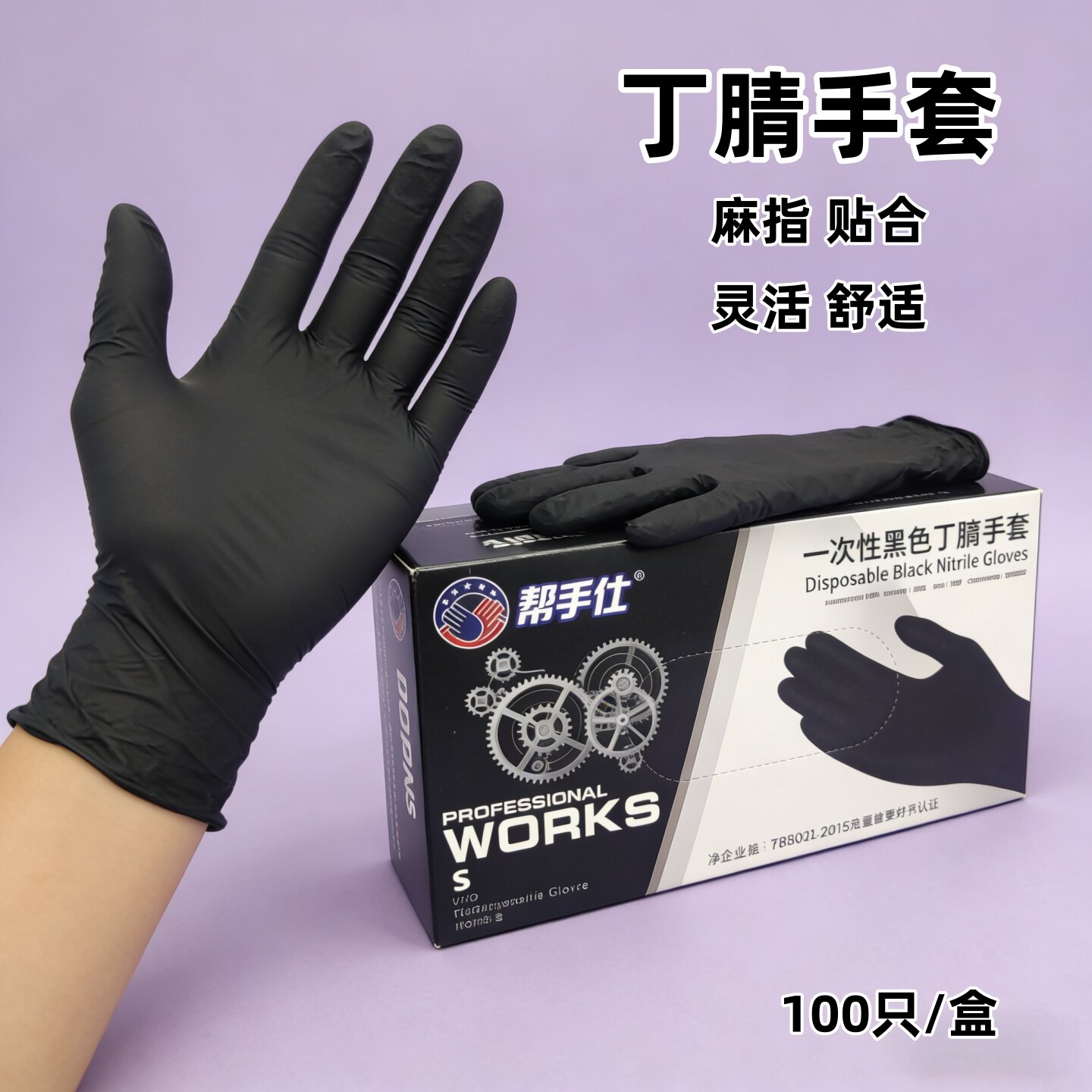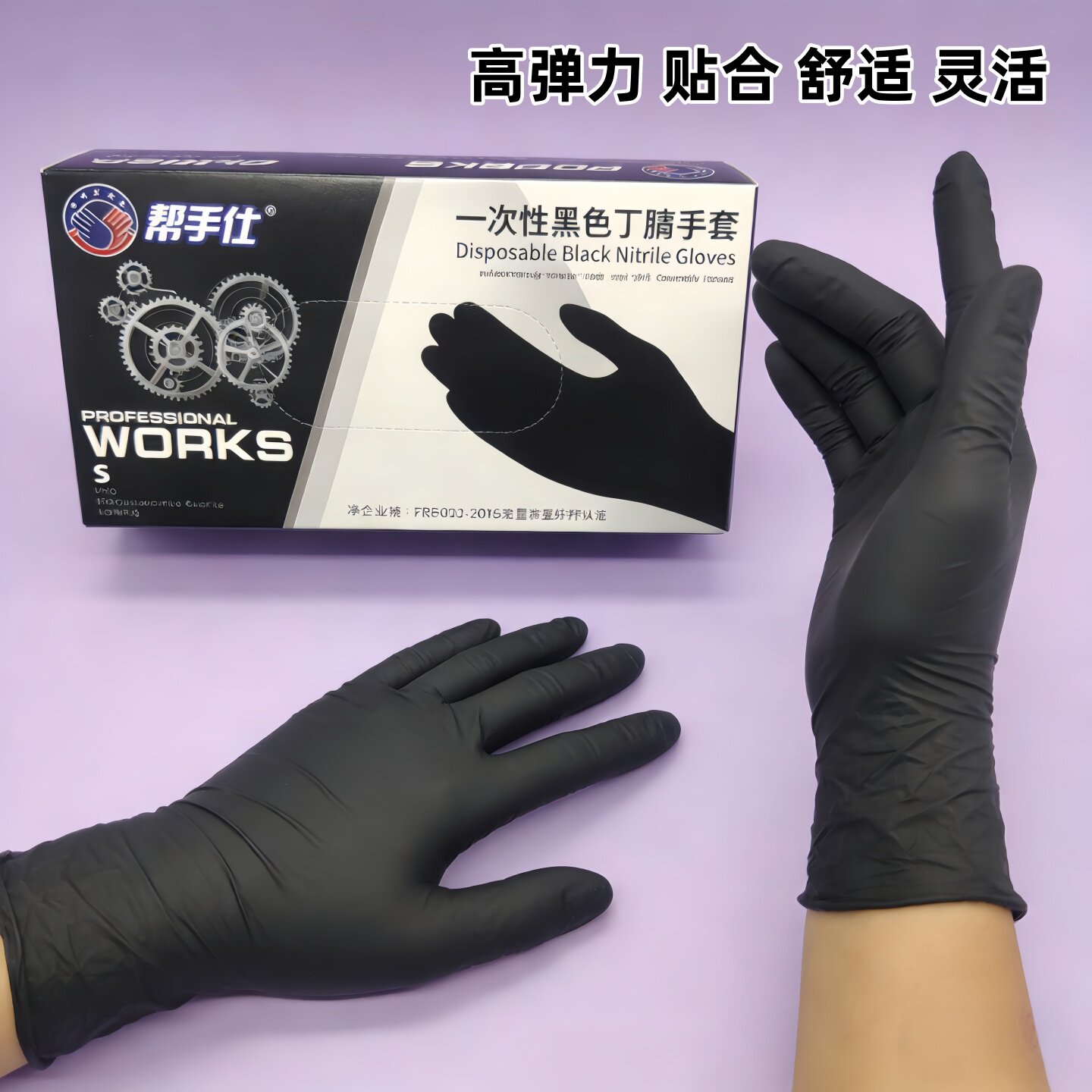帮手仕一次性丁腈手套加厚染发家务食品级厨房家务乳橡胶防油美术