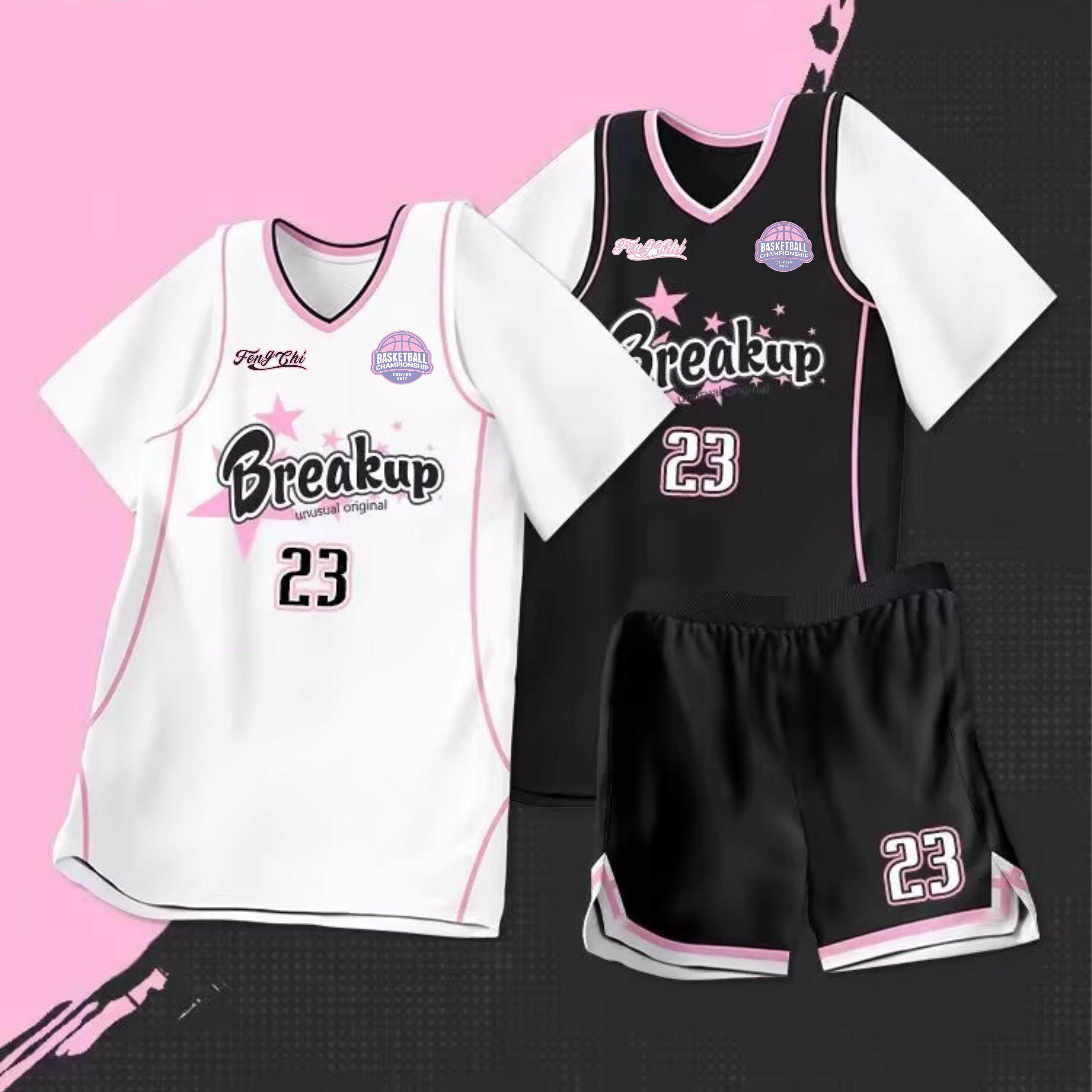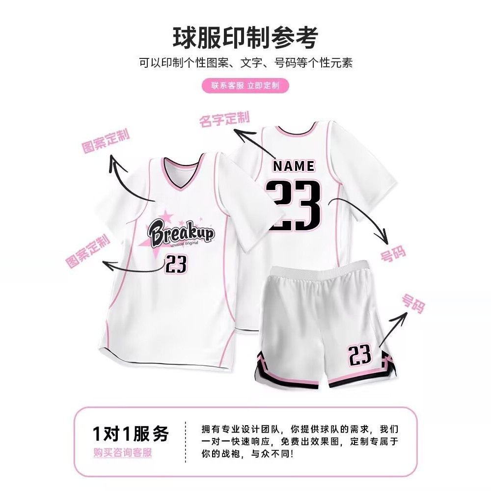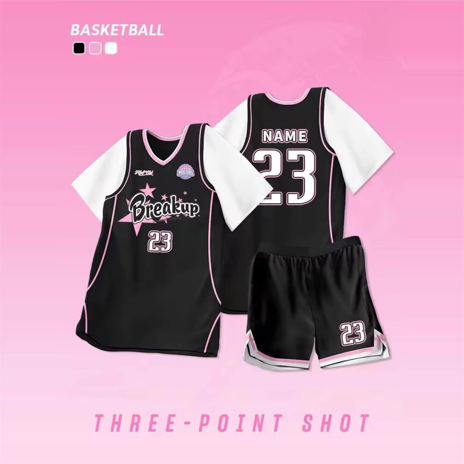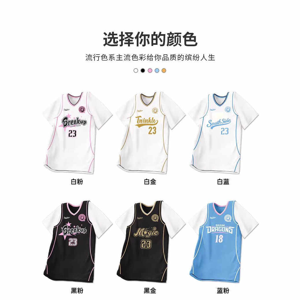 新款美式篮球服定制女生假两件短袖套装学生比赛队服夏季篮球衣女
