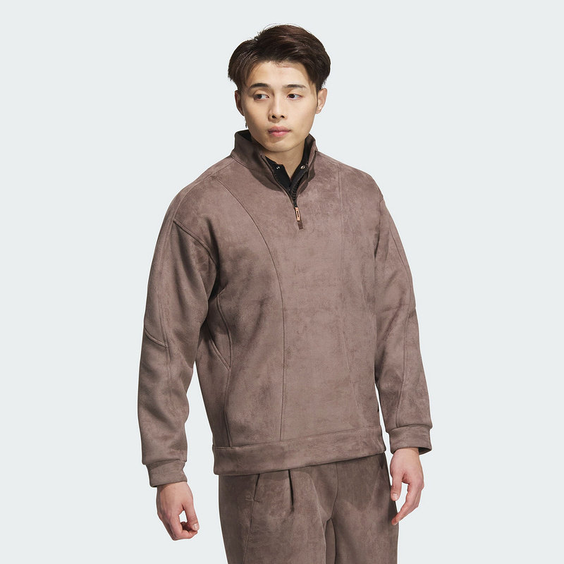 Adidas阿迪达斯男款半拉链麂皮绒套头衫卫衣运动风休闲上衣JI8725