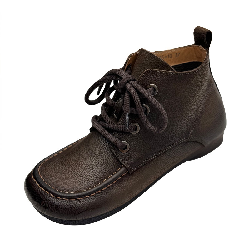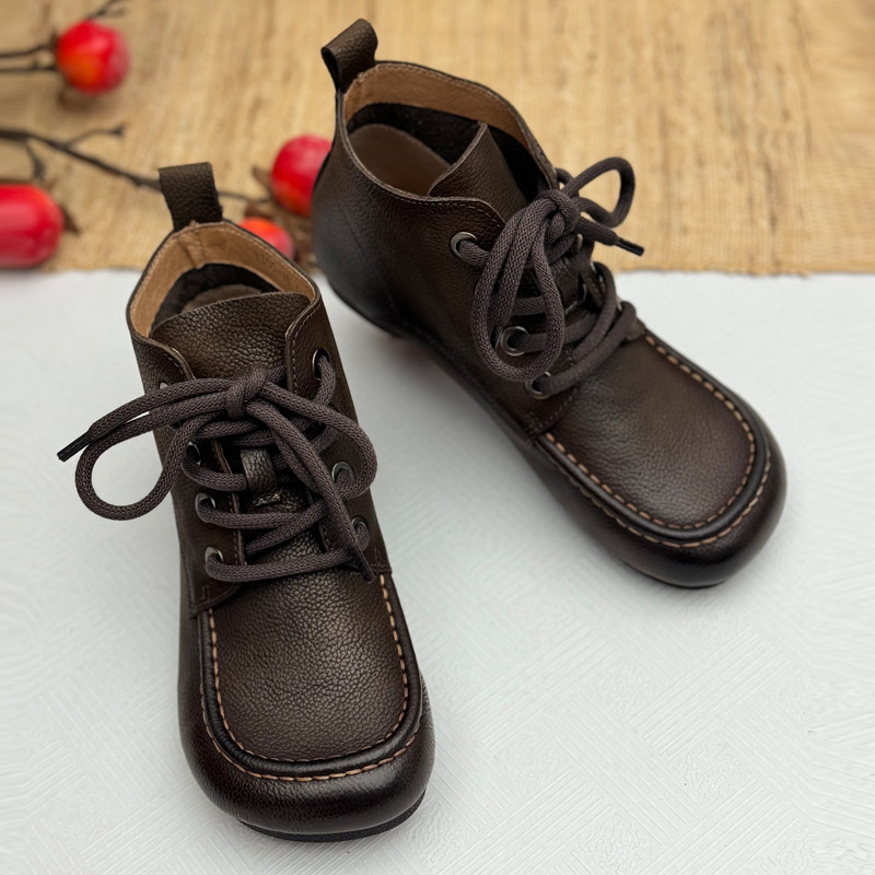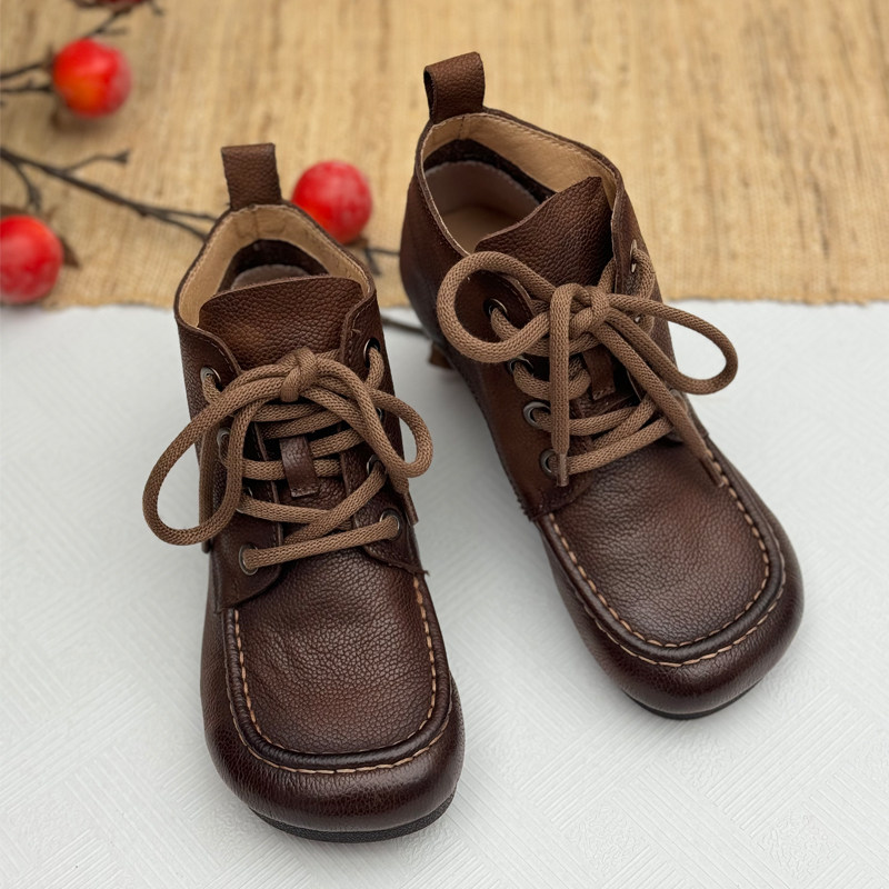 手工真皮复古短靴女秋冬新款女鞋舒适中老年鞋子头层牛皮马丁靴