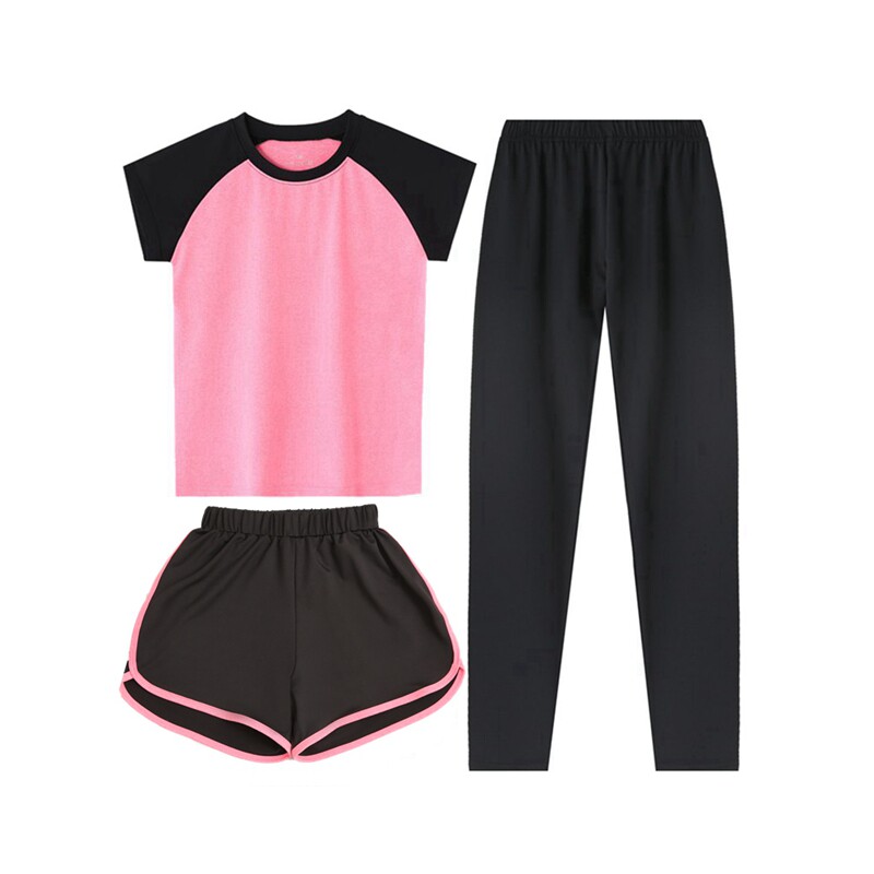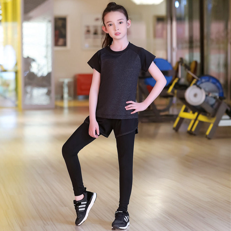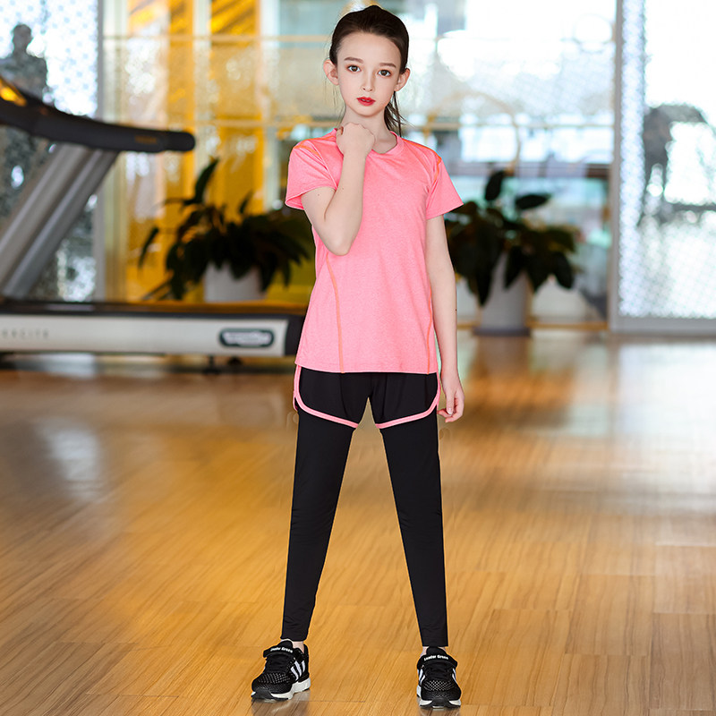 儿童速干衣女童运动套装夏季篮球体能训练服跑步瑜伽服短袖三件套