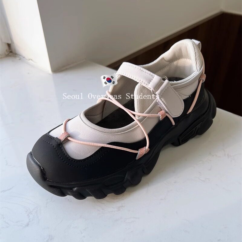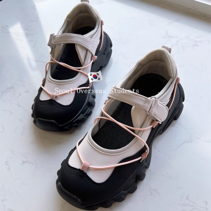 首尔留学生春秋魔术贴运动松糕鞋女厚底减龄少女感玛丽珍单鞋子