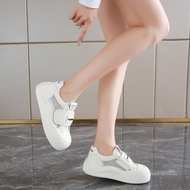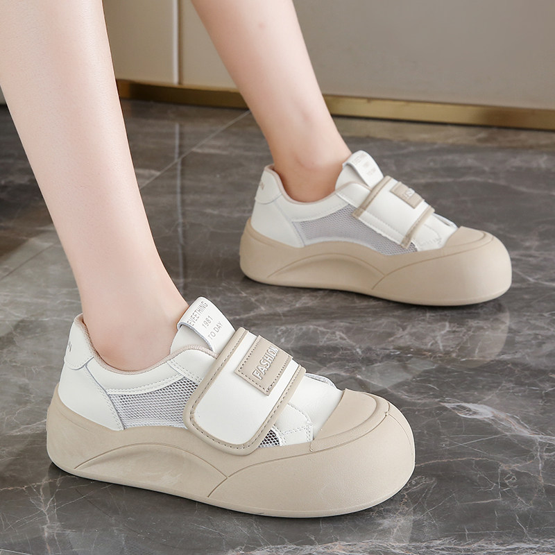 踩屎感学生鞋子轻便软底运动板鞋女2025新款网面透气魔术贴小白鞋