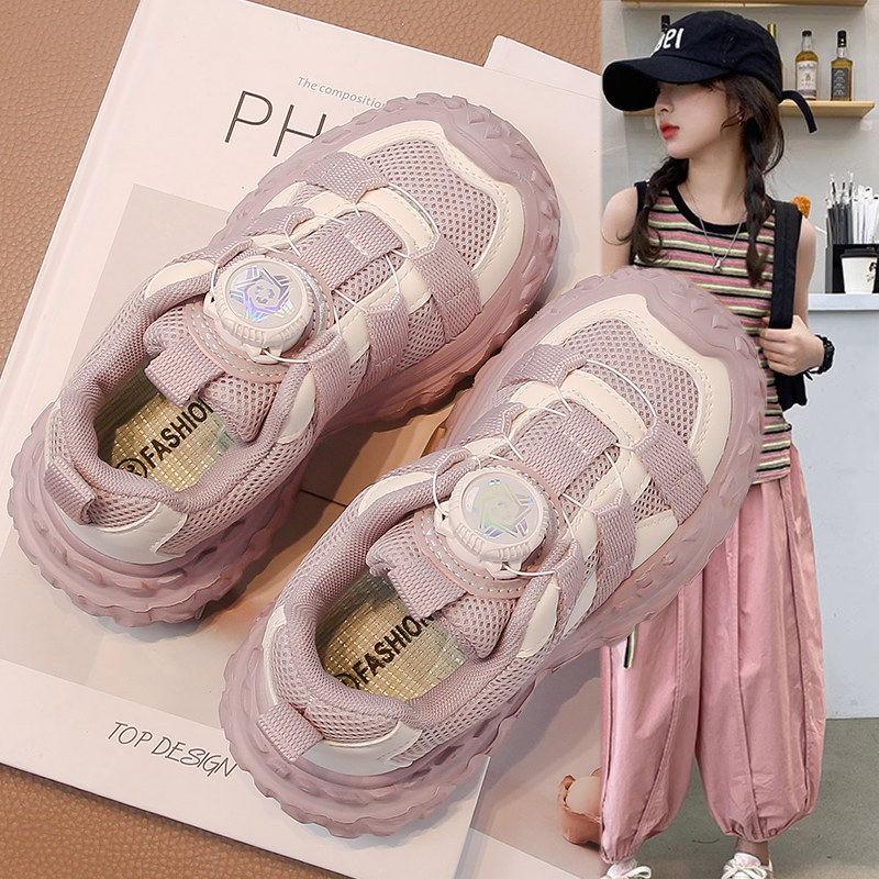 女童鞋2025新款旋转扣儿童春秋款运动老爹鞋女孩软底中大童网面鞋