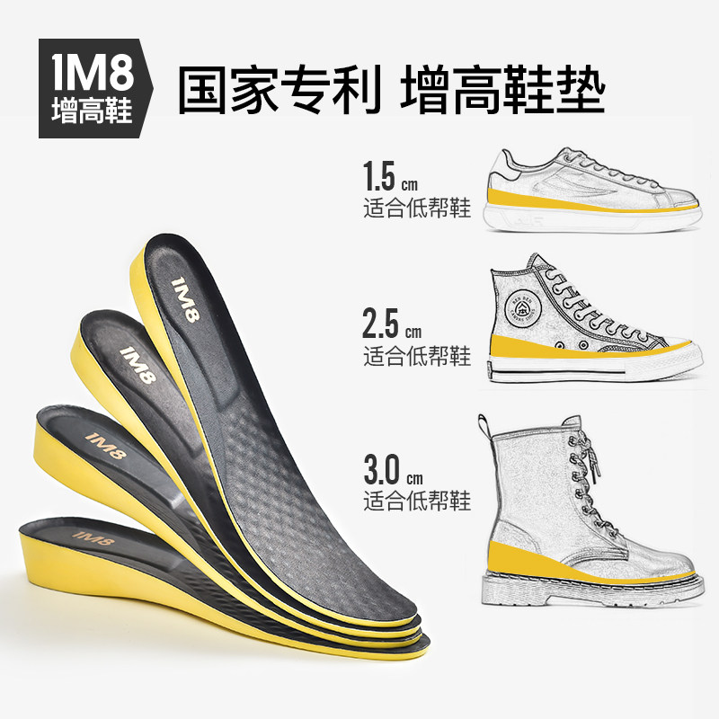 1M8隐形内增高鞋垫男女士吸汗防臭透气皮鞋休闲鞋牛皮软底四季款