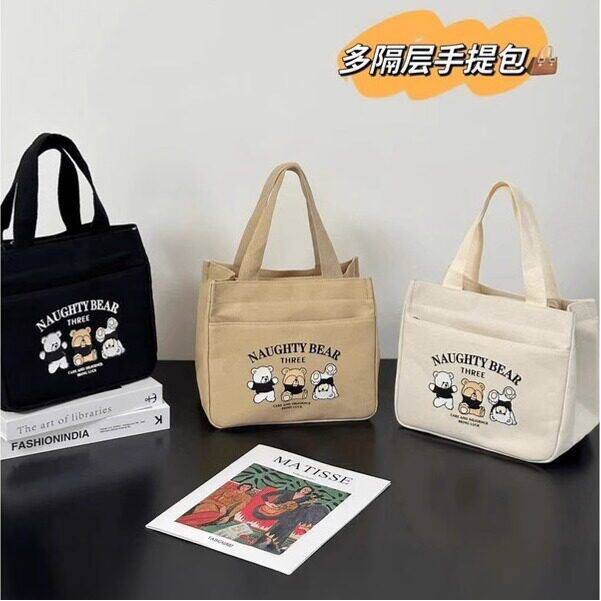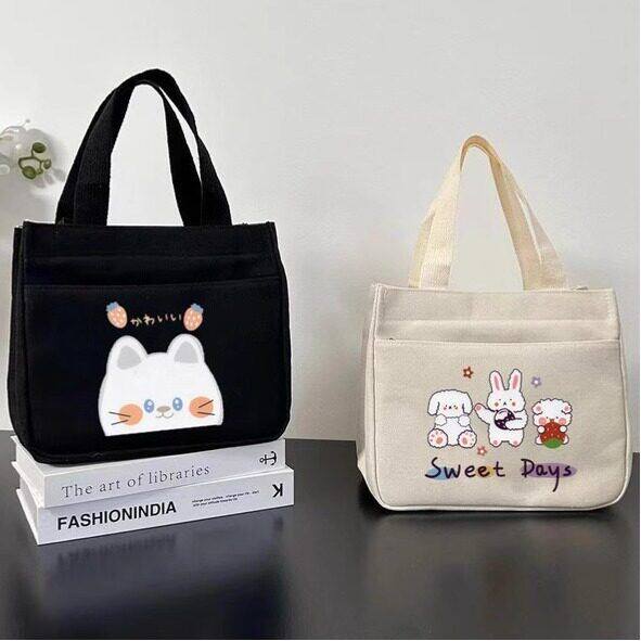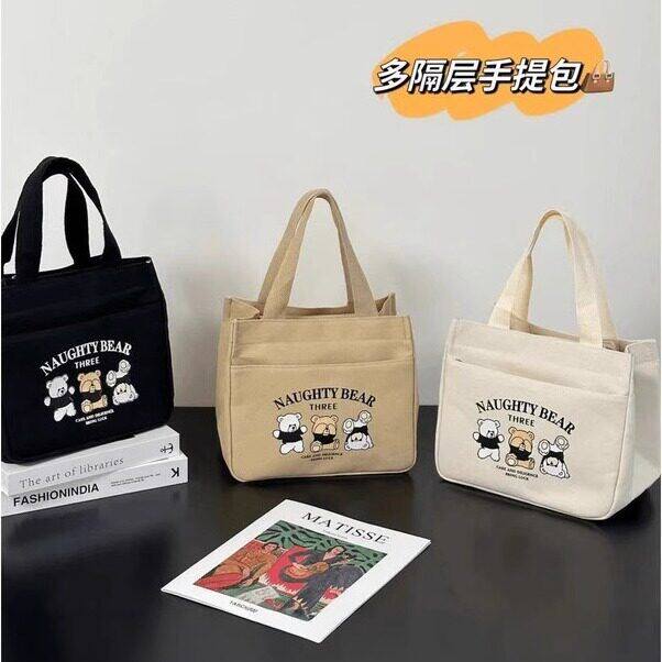 2026新款出门上班族杂物小拎包拉链洋气网红盒饭手提袋帆布女通勤