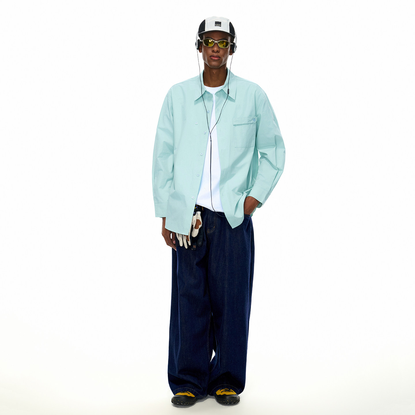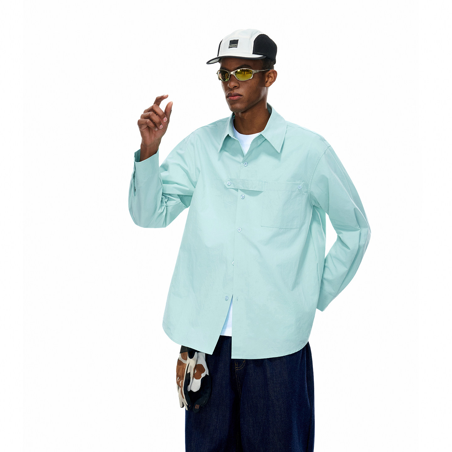 ARTANNIE美式设计感纯棉长袖衬衫男款春季宽松薄荷绿情侣衬衣外套