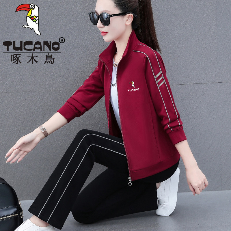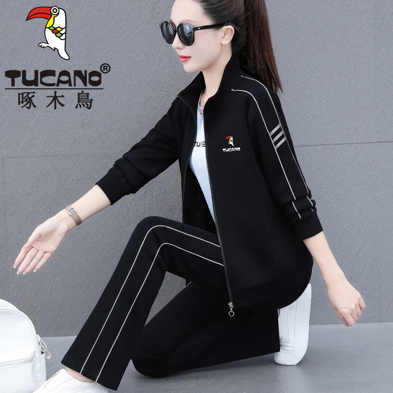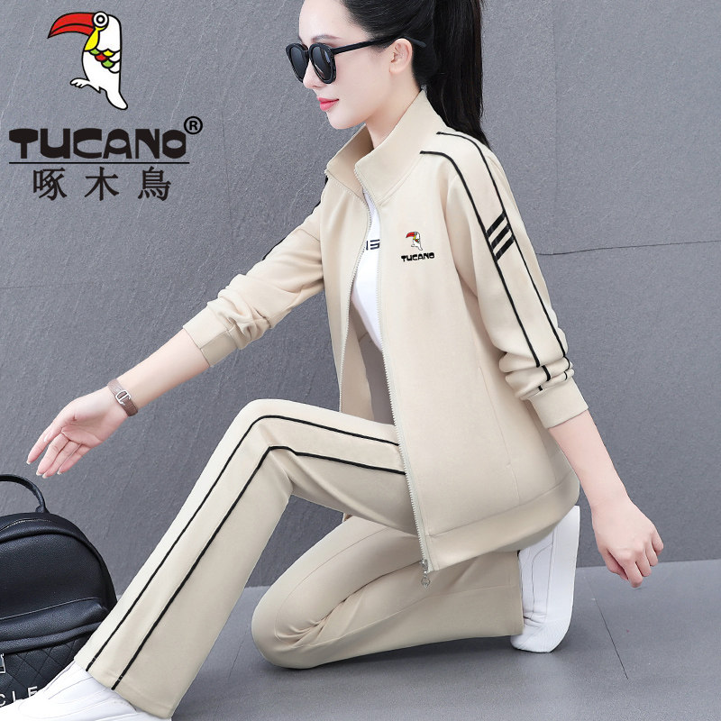 啄木鸟灰色运动套装女春秋2026年新款时尚爆款中年妈妈休闲三件套