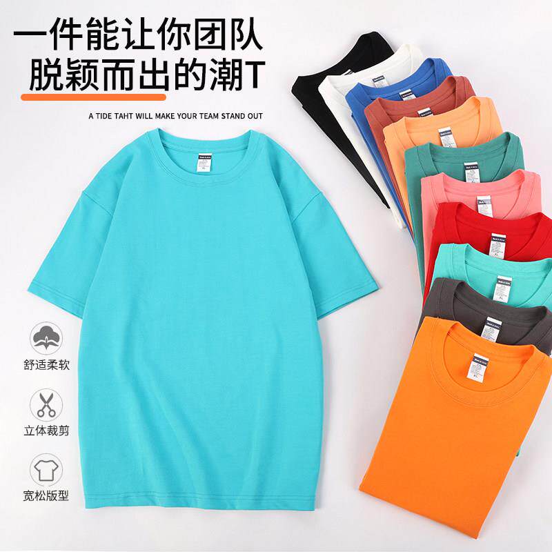重磅纯棉工作服t恤定制印logo夏季短袖团建公司班服餐饮工衣厂服