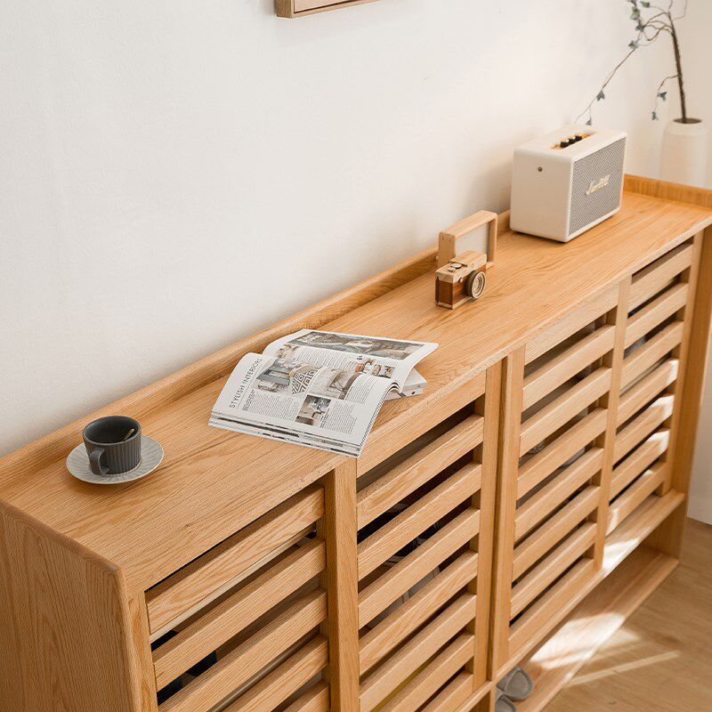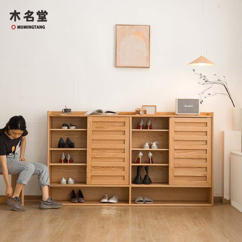 实木鞋柜北欧日式家用入户玄关柜格栅推拉门透气储物柜简约隔断柜
