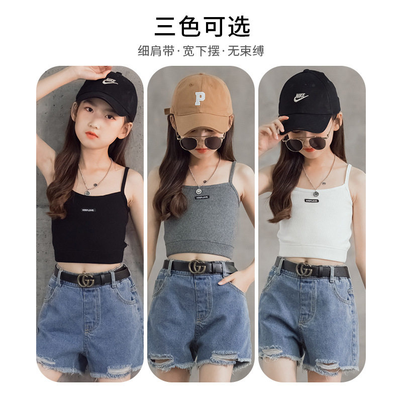 女童吊带背心夏季薄款外穿大童夏装洋气百搭吊带衫儿童短款上衣潮